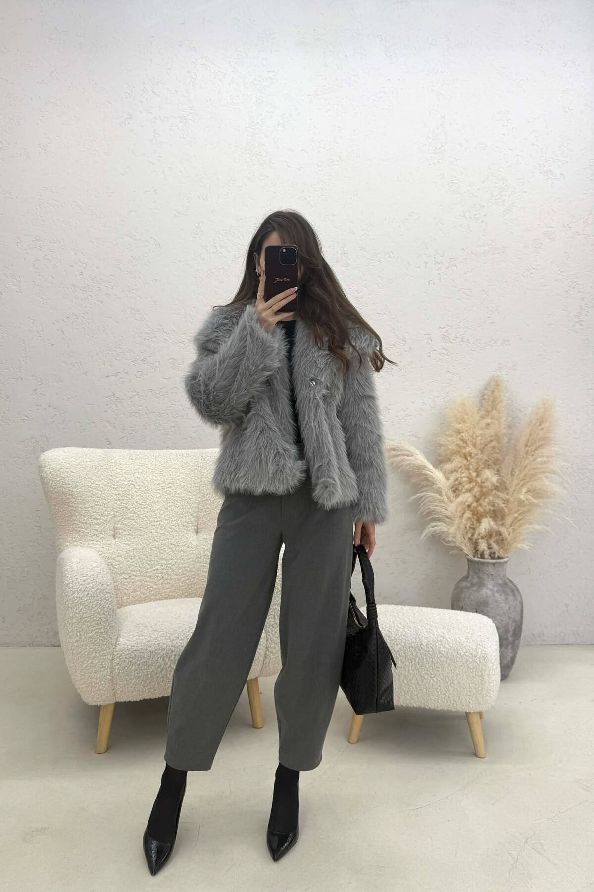 ONE COLOR FAUX FUR WOMAN COAT GREY/GRI