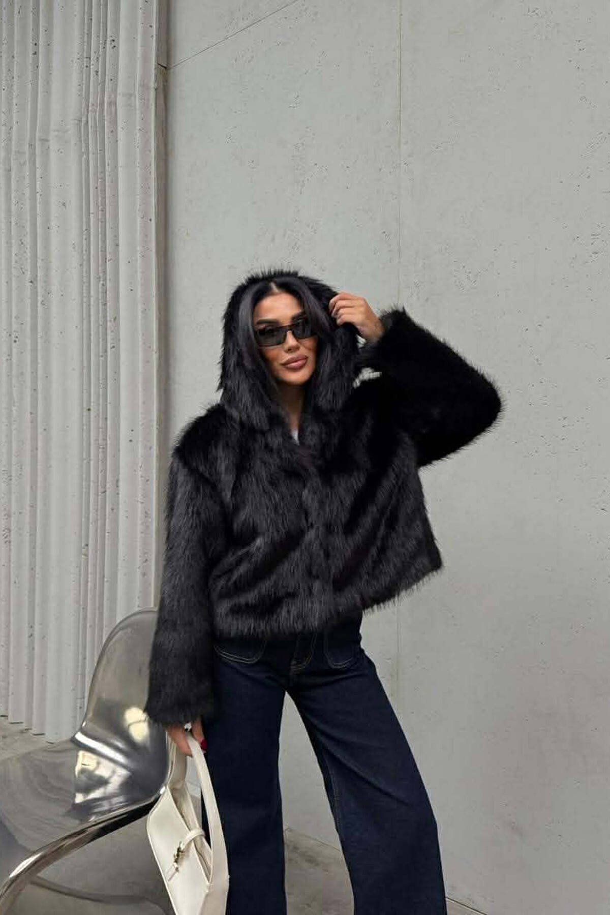 ONE COLOR FAUX FUR WOMEN JACKET BLACK/ E ZEZE
