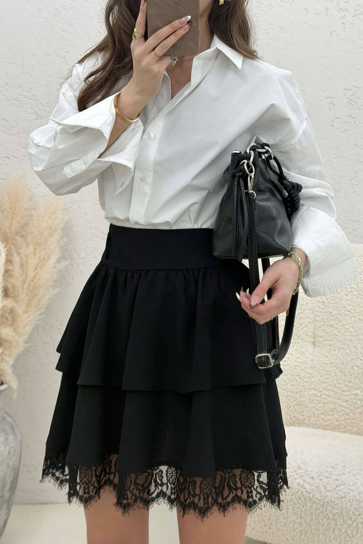 ONE COLOR FLOUNCING SHORT WOMAN SKIRT BLACK/ E ZEZE