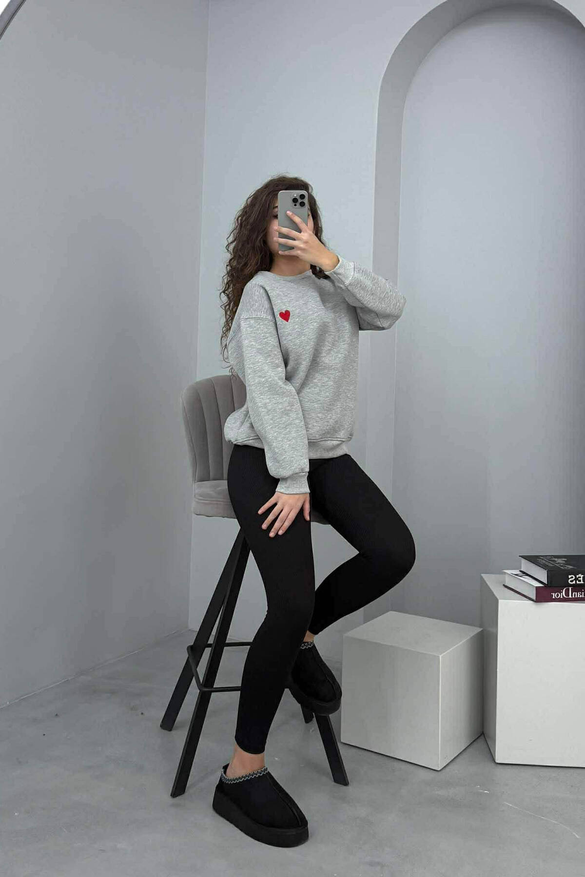 ONE COLOR FLUFFY HEART LOGO WOMEN SWEATSHIRT GREY/GRI