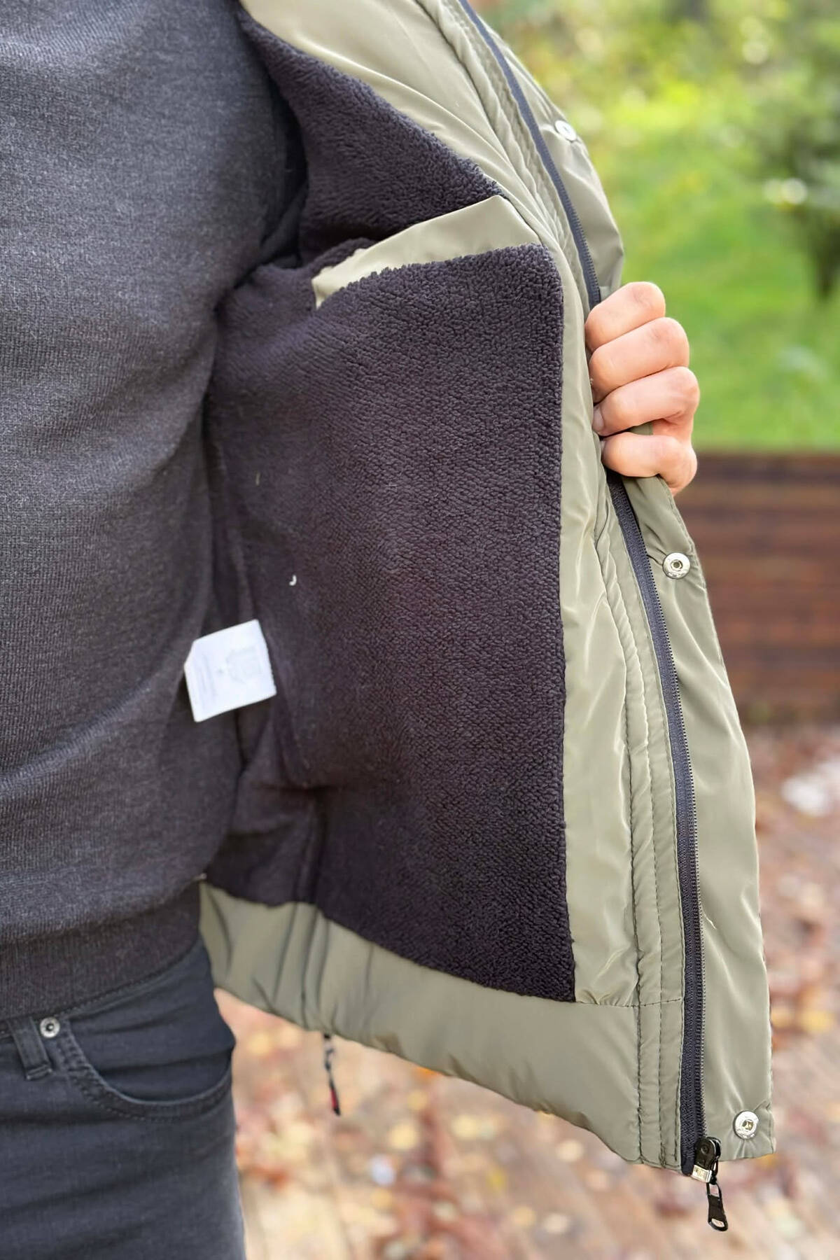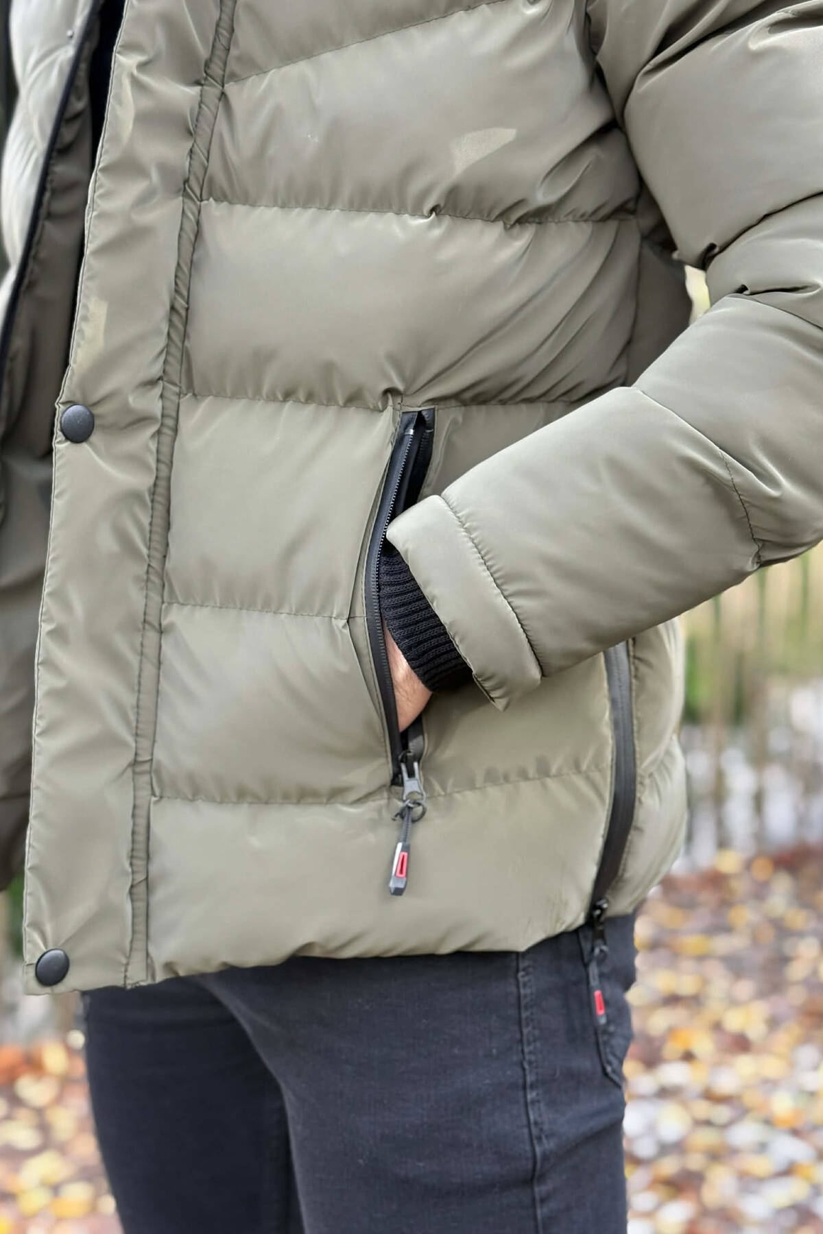 ONE COLOR FLUFFY SIDE POCKET MEN PUFFER JACKET DARK GREY/GEE