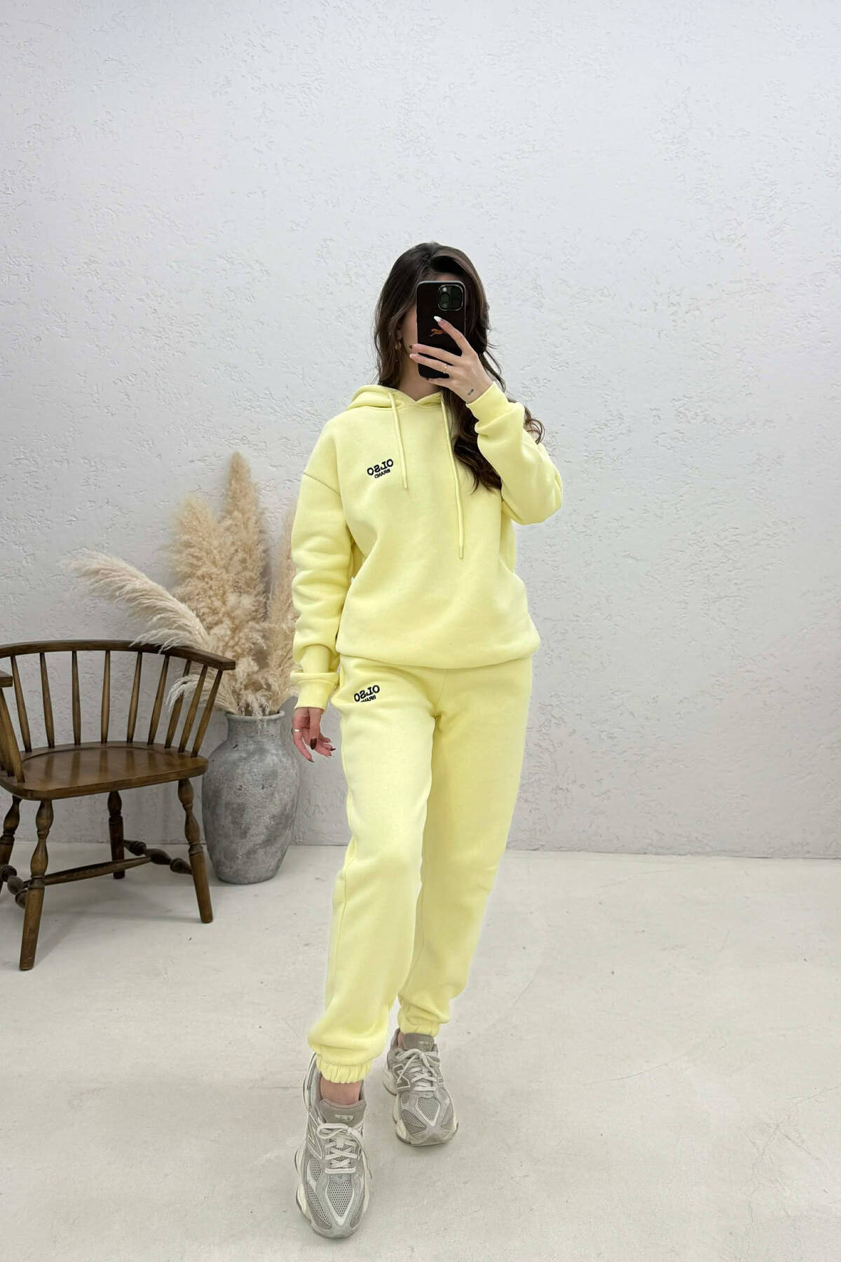 SET NJE NGJYRESH ME PUSH HOODIE + TUTA PER FEMRA NE NGJYRE TE VERDHE