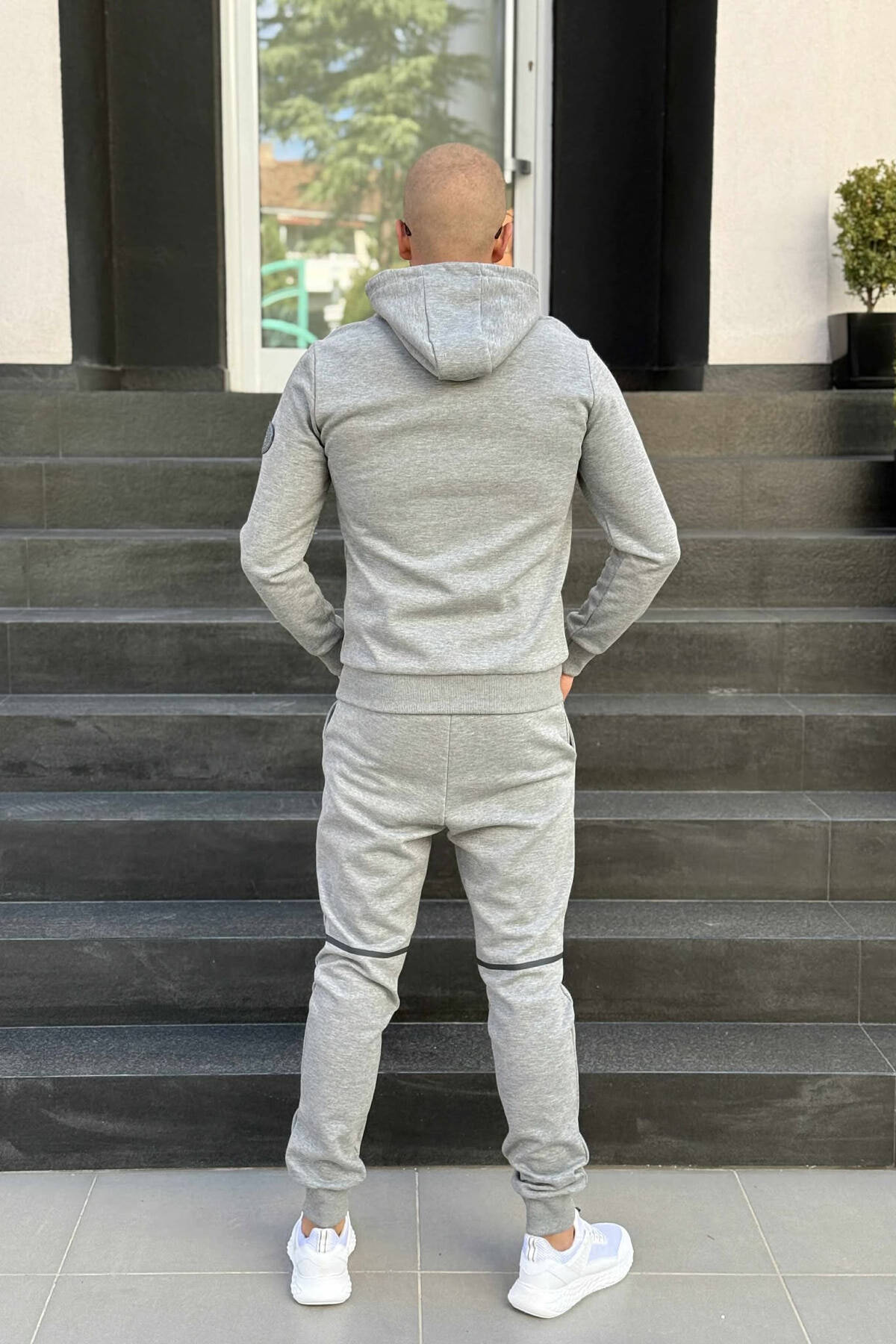 ONE COLOR FLUFFY HOODIE+SWEATPANTS MEN SET GREY/GRI