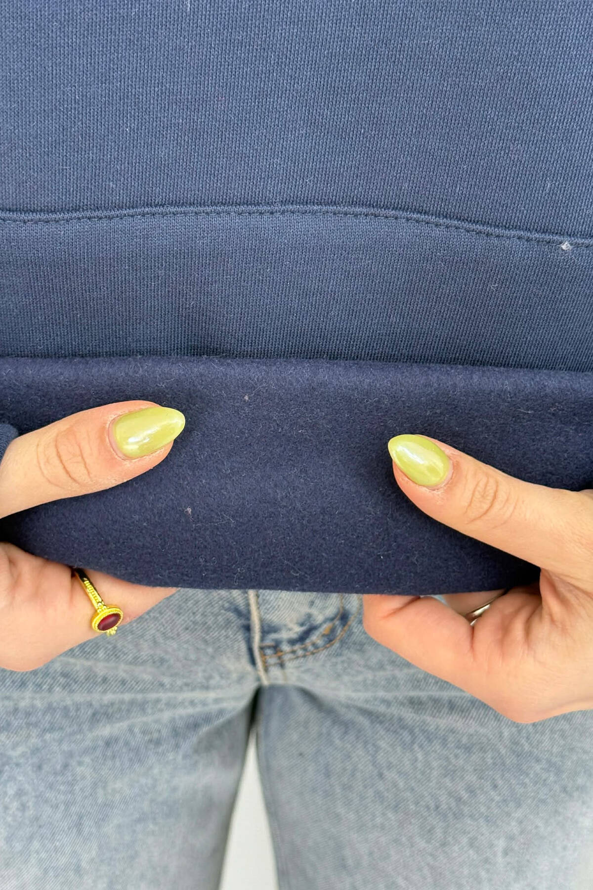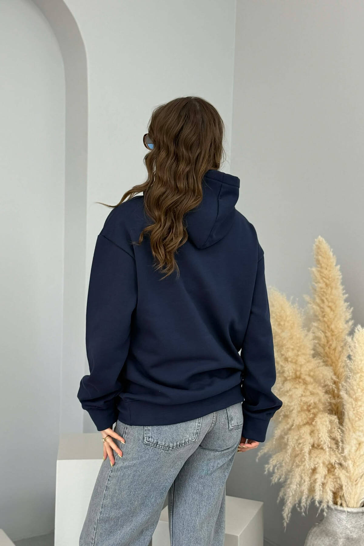 ONE COLOR FLUFFY WOMEN HOODIE DARK BLUE/BEE