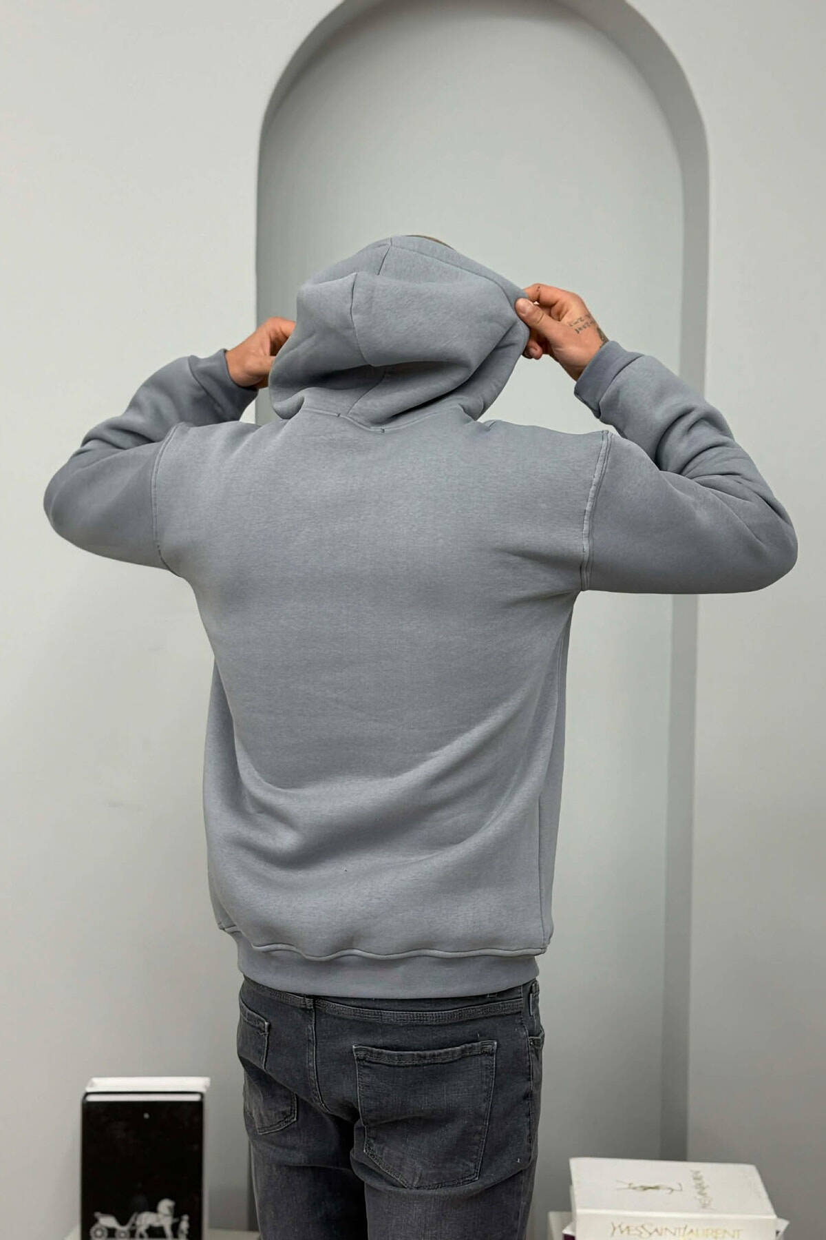 SMALL DETAIL ONE COLOR FLUFFY MEN HOODIE GREY/GRI