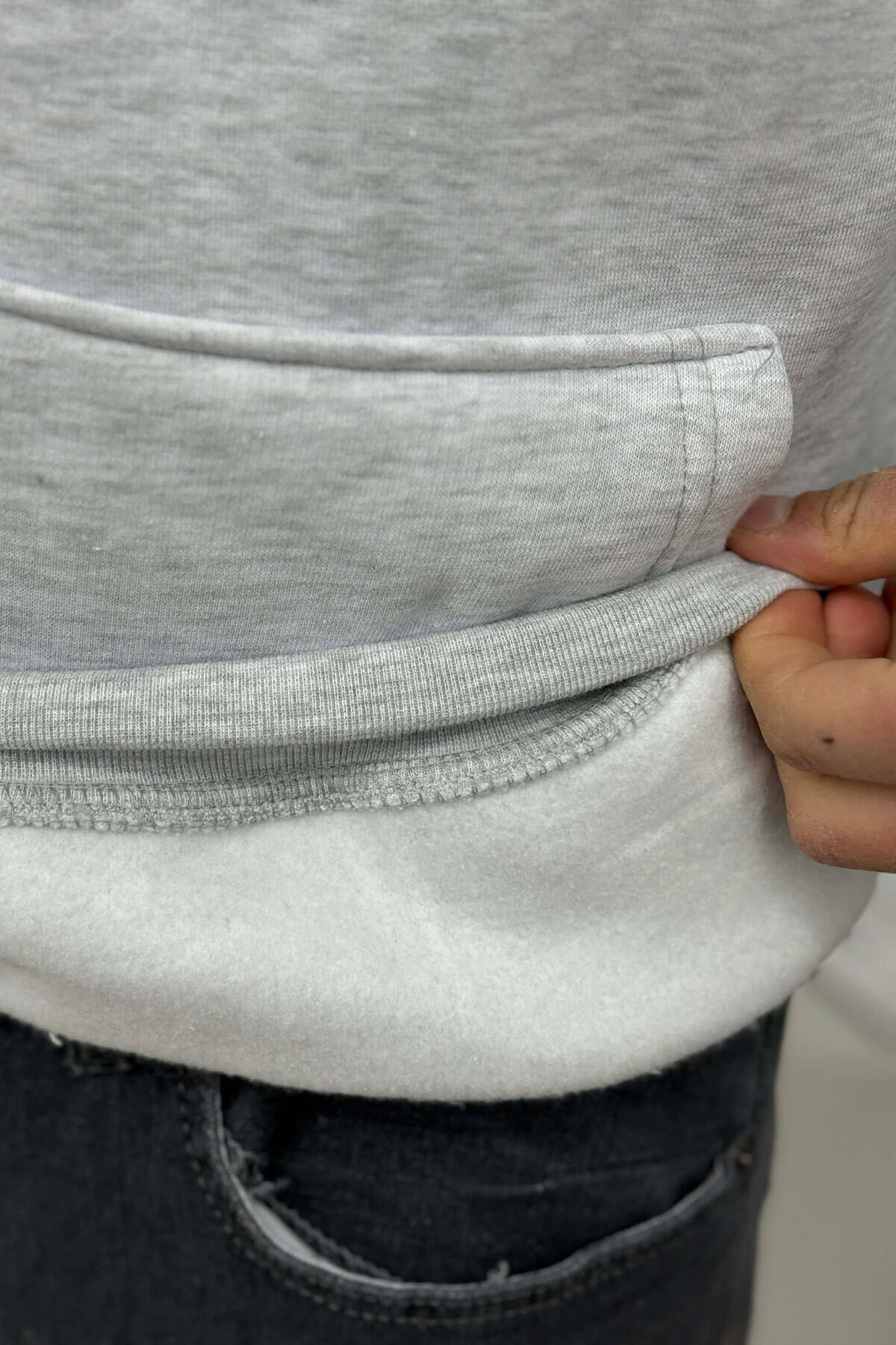 SMALL DETAIL ONE COLOR FLUFFY MEN HOODIE GREY/GRI
