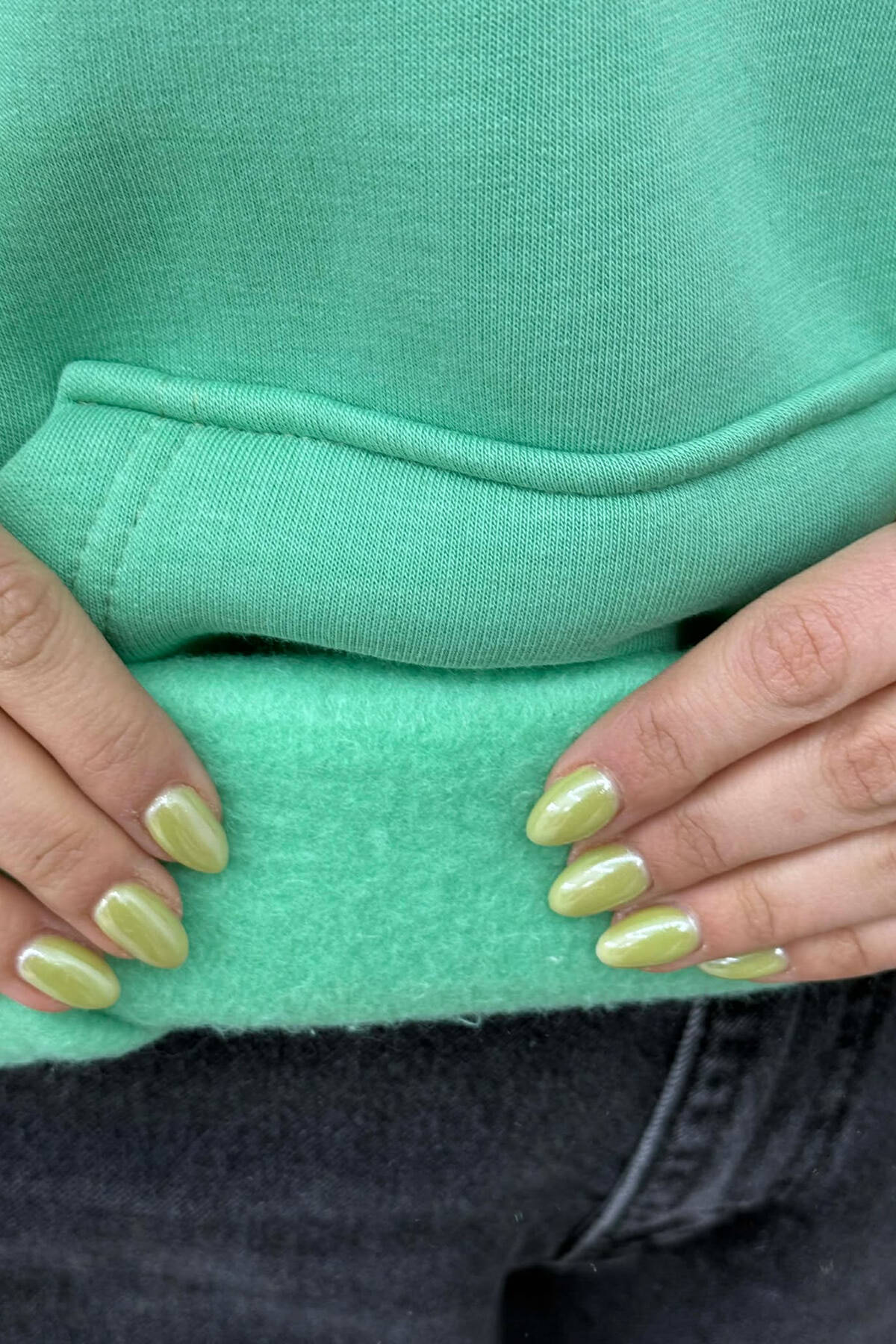 ONE COLOR FLUFFY SIMPLE FRONT WRITTING WOMEN HOODIE MINT/MENTE
