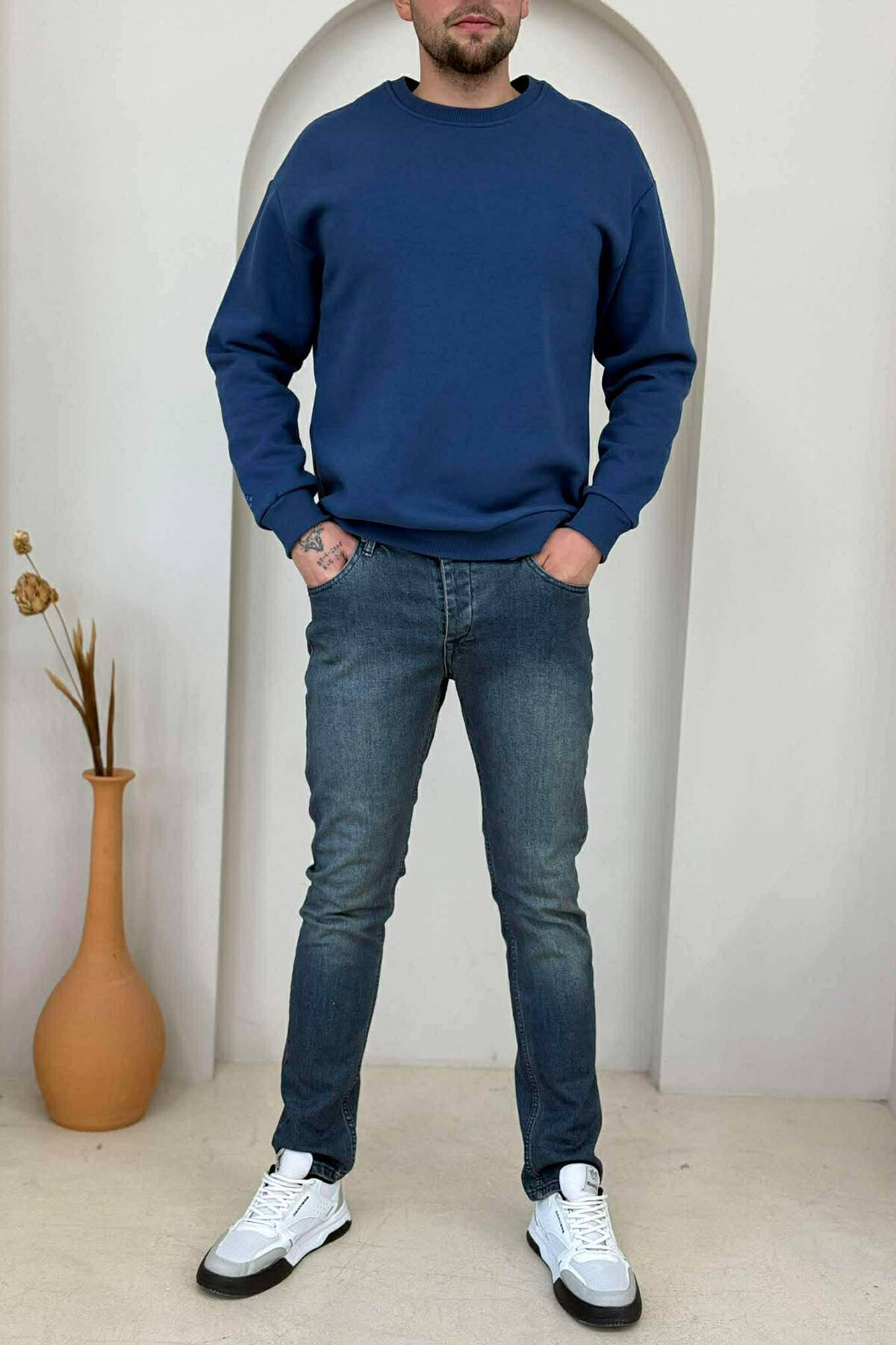 ONE COLOR FLUFFY SIMPLE MEN SWEATSHIRT BLUE/BLU