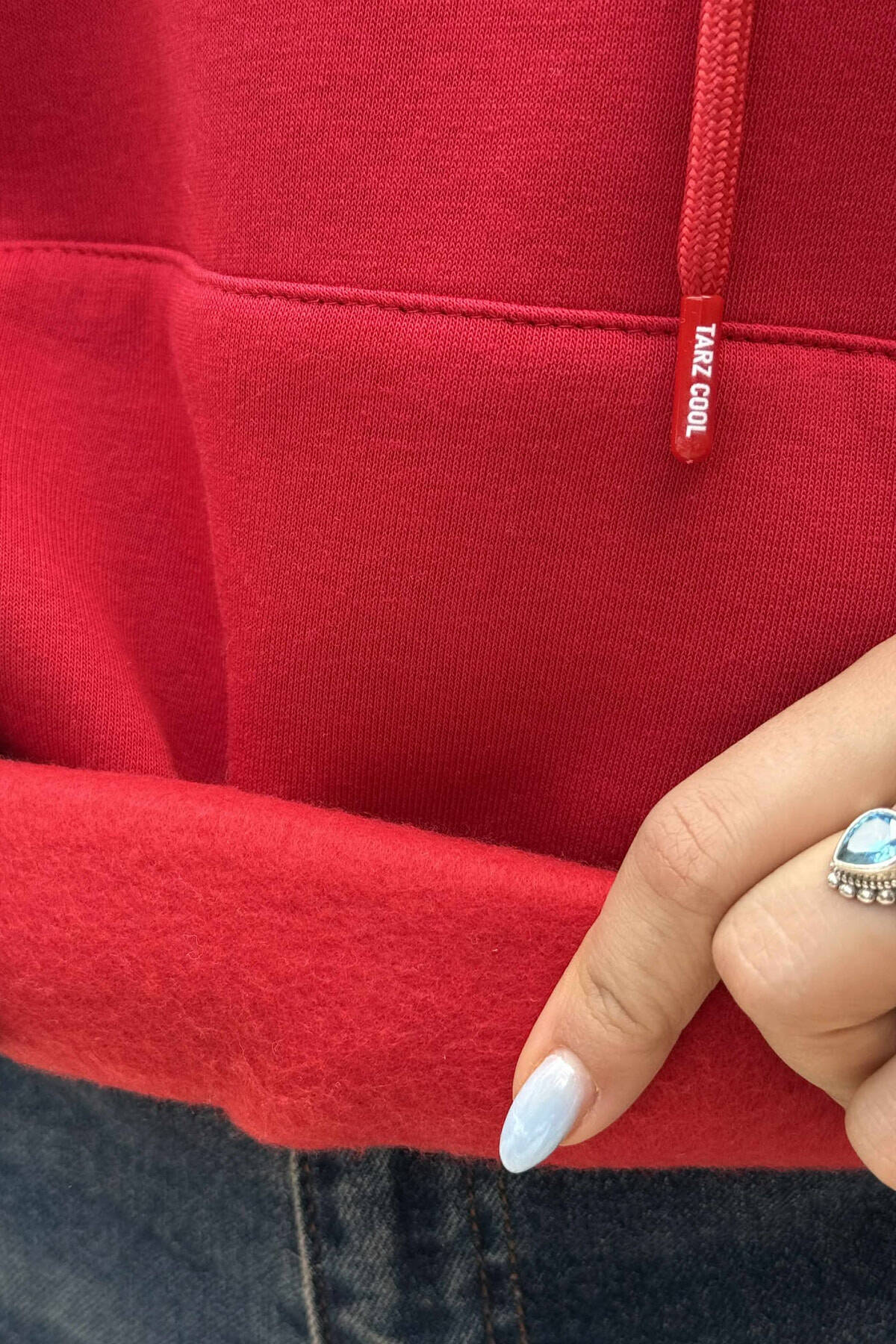FLUFFY ONE COLOR FRONT & BACK IMAGE WOMEN HOODIE RED/E KUQE