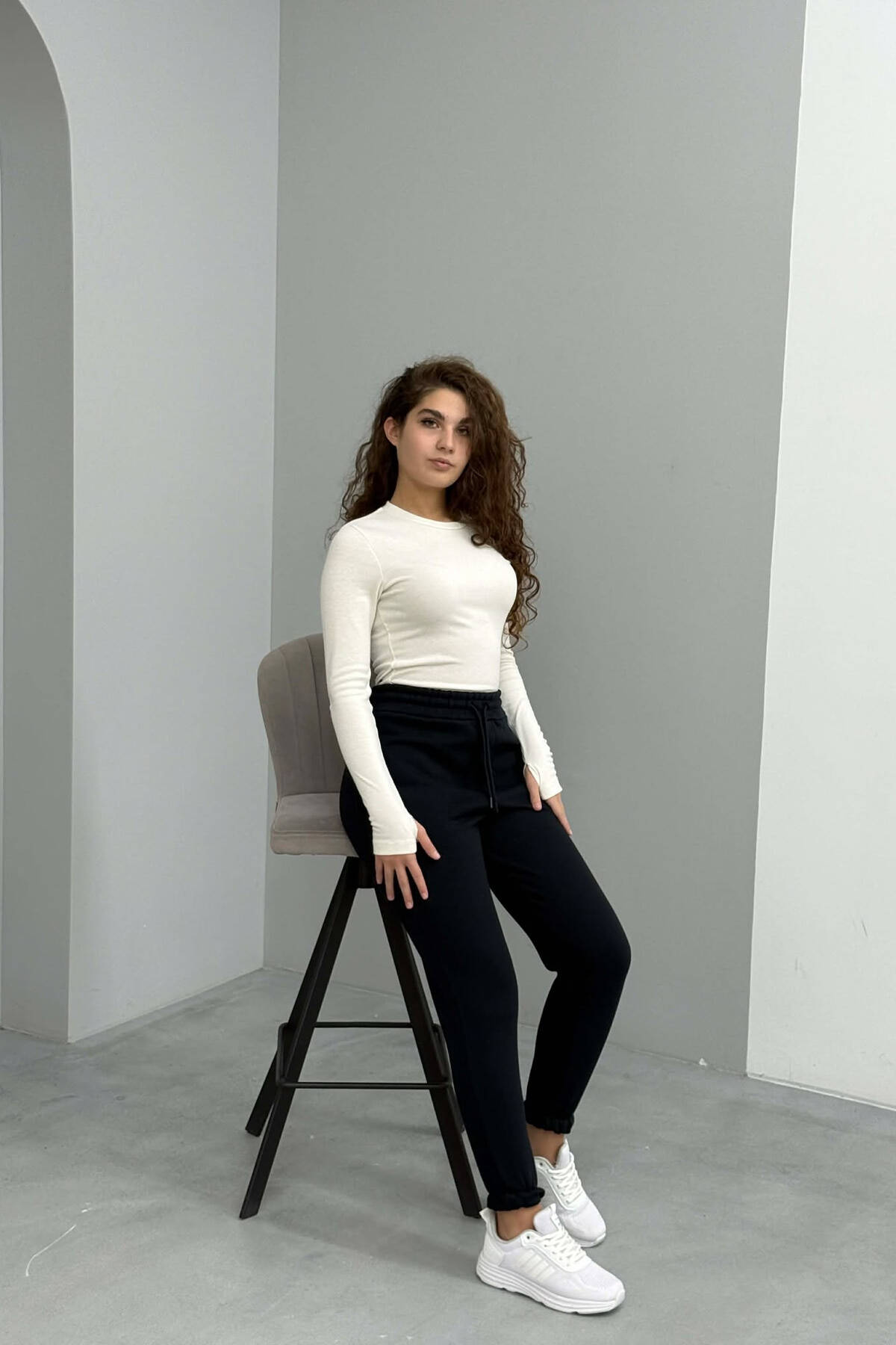 TUTA NJË NGJYRËSHE ME PUSH PËR FEMRA NË NGJYRË TË ZEZË