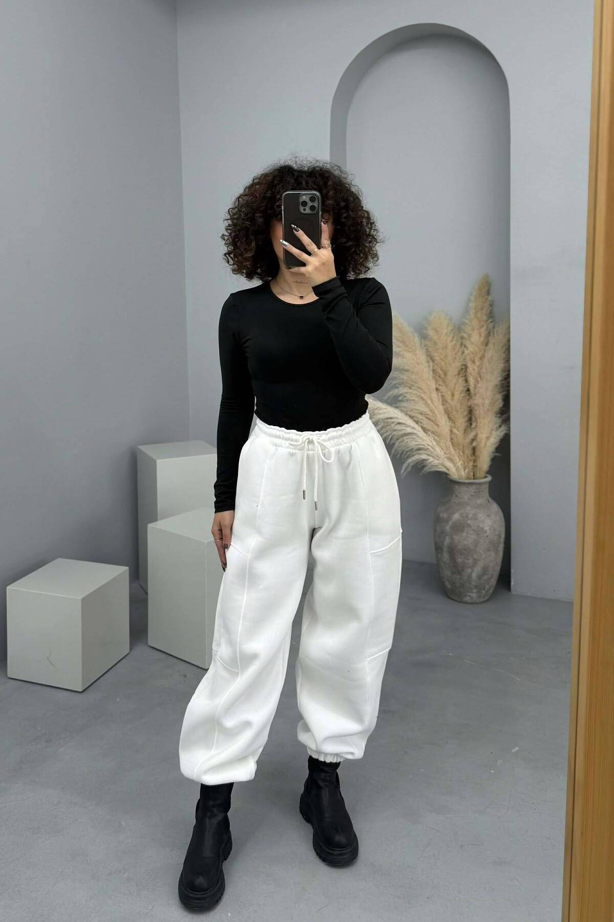 ONE COLOR FLUFFY SIMPLE WOMEN JOGGERS WHITE-E BARDHE