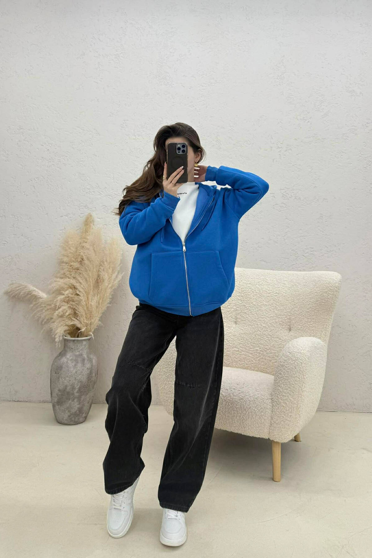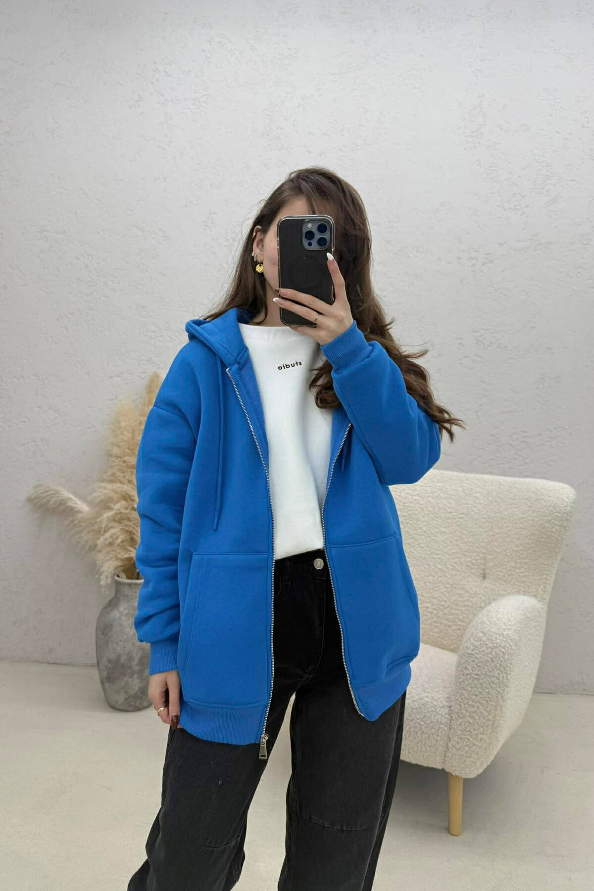 ONE COLOR FLUFFY WOMAN COTTON JACKET BLUE/BLU
