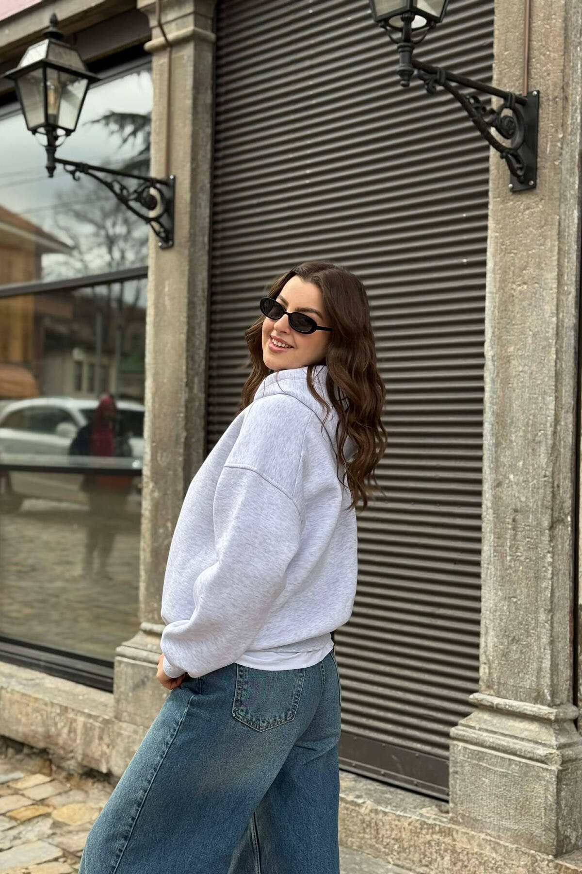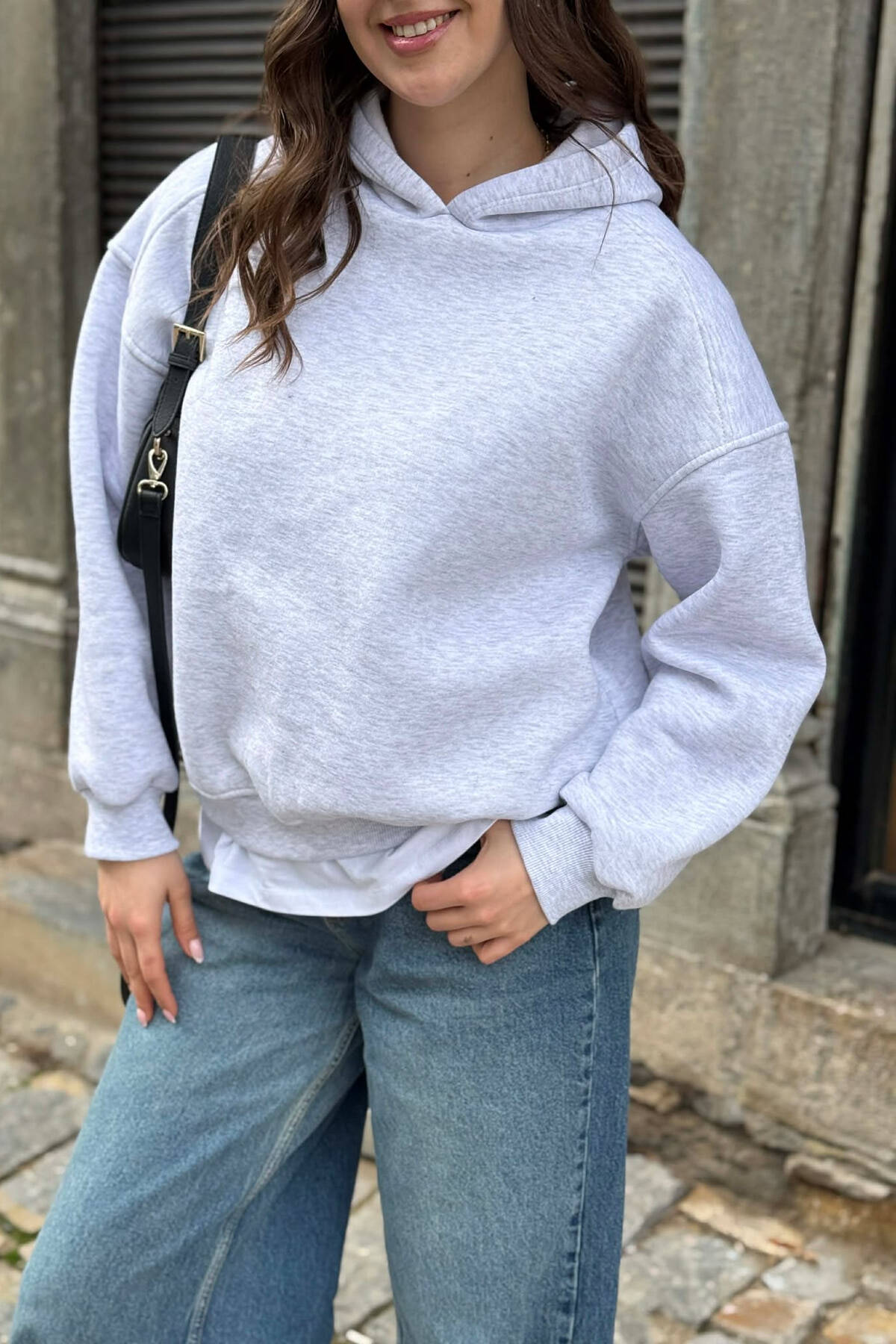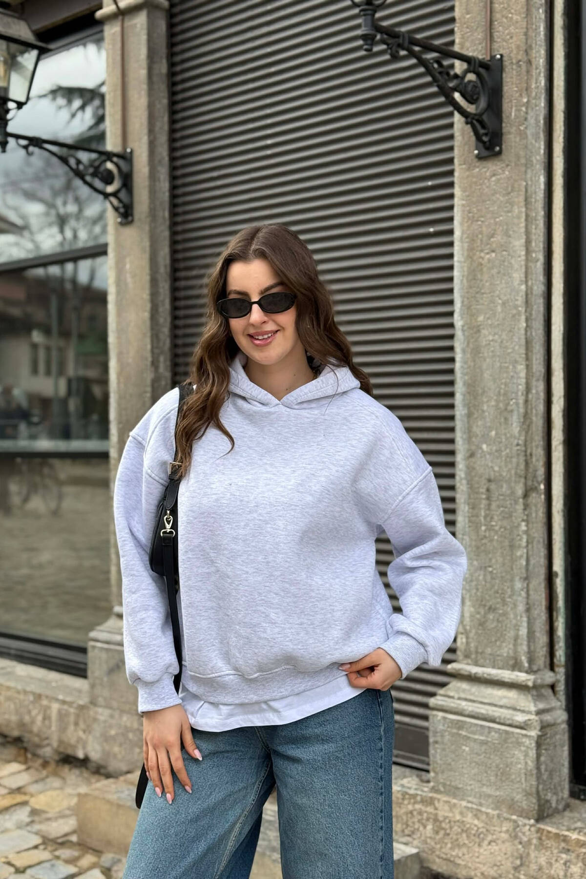 HOODIE E THJESHTE NJE NGJYRESHE PER FEMRA NE NGJYRE GRI TE ZBARDHUR
