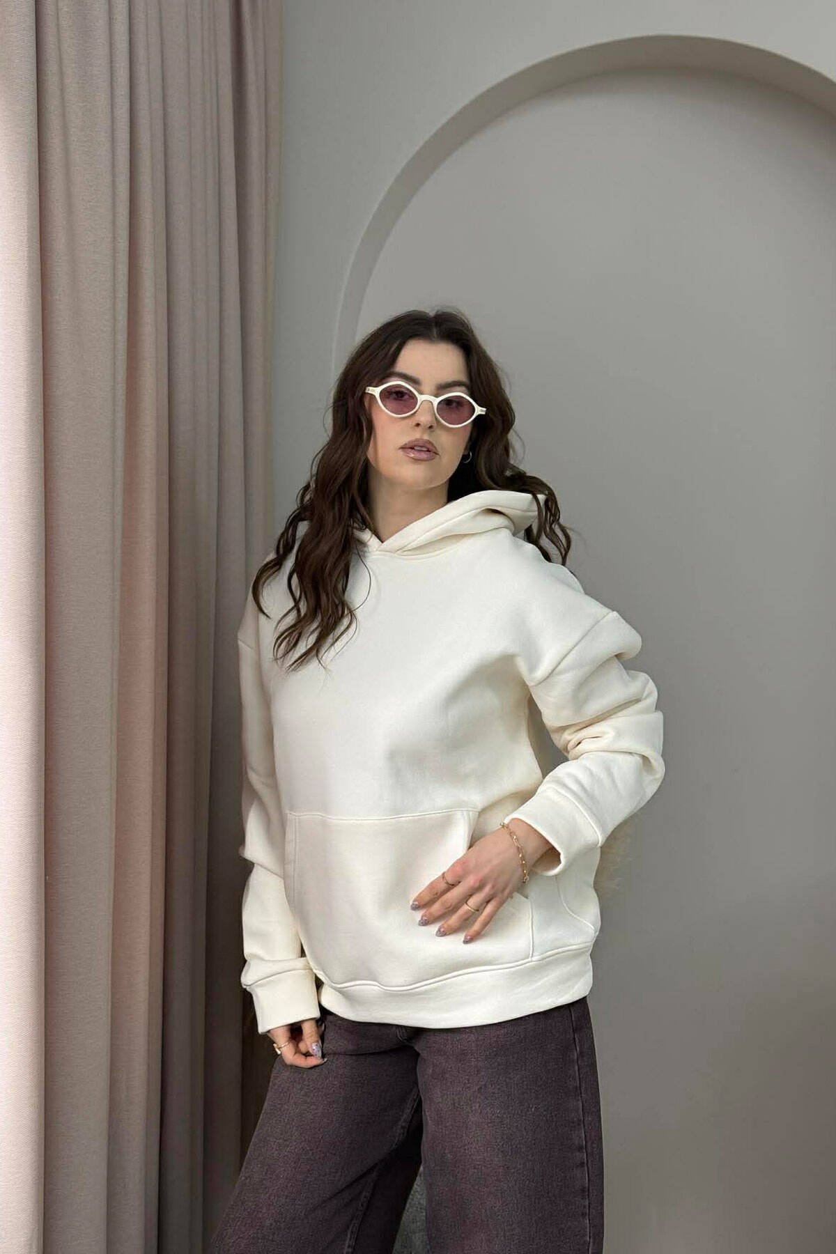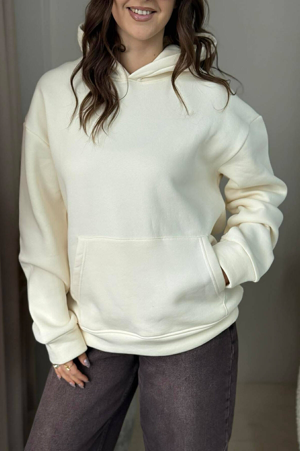 ONE COLOR FLUFFY WOMEN HOODIE CREAM/KREM
