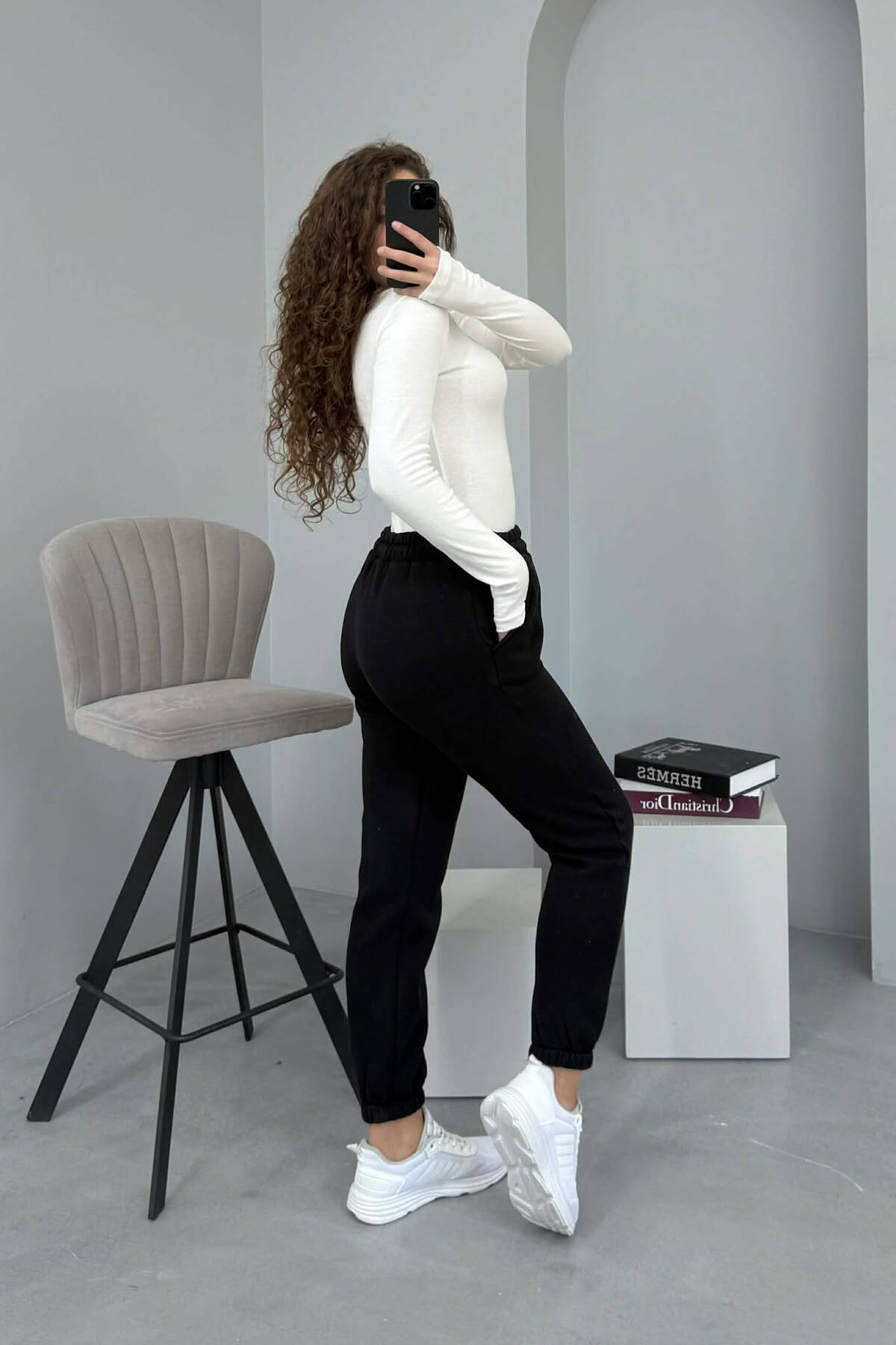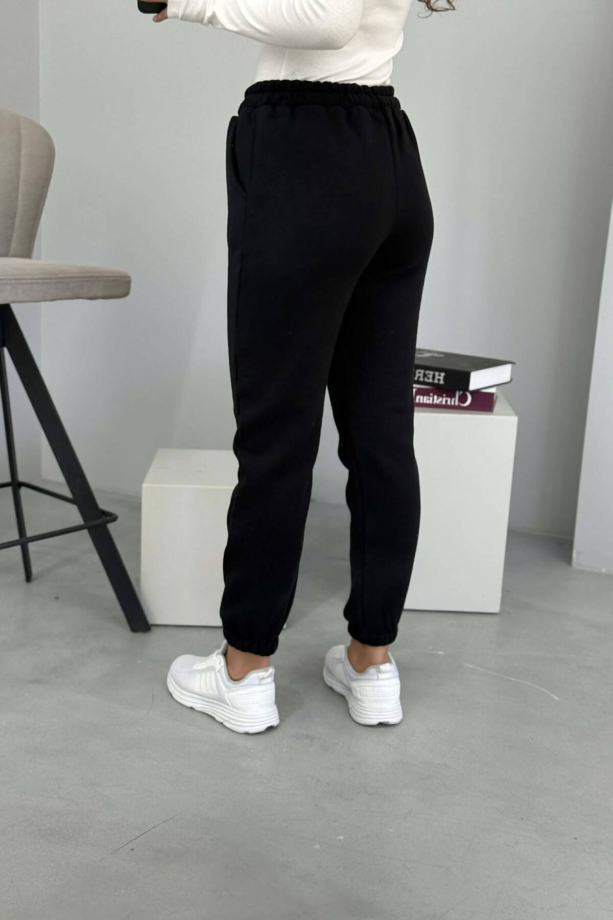 ONE COLOR FLUFFY WOMEN JOGGERS BLACK/ E ZEZE