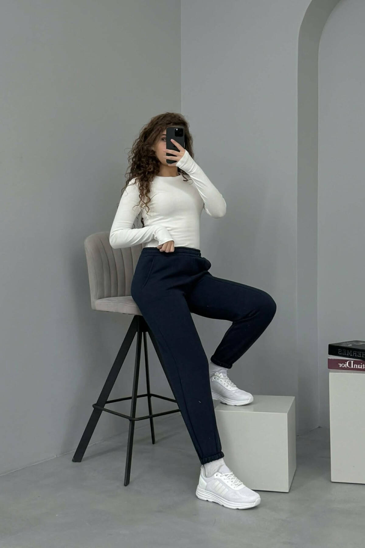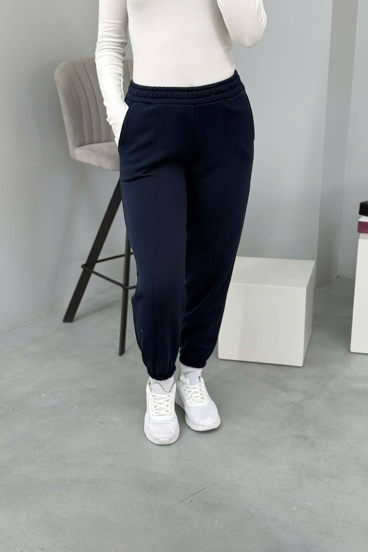 ONE COLOR FLUFFY WOMEN JOGGERS DARK BLUE/BEE