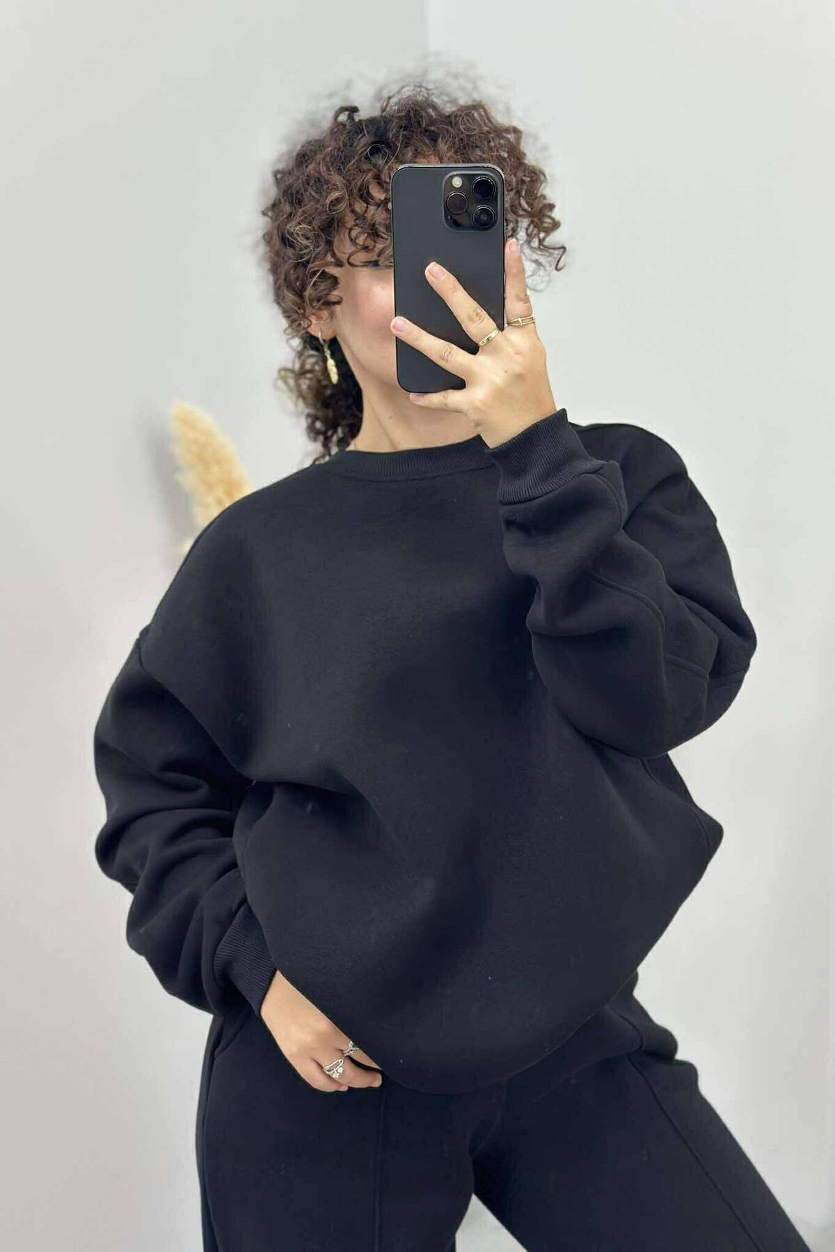ONE COLOR FLUFFY WOMEN SET BLACK/ E ZEZE