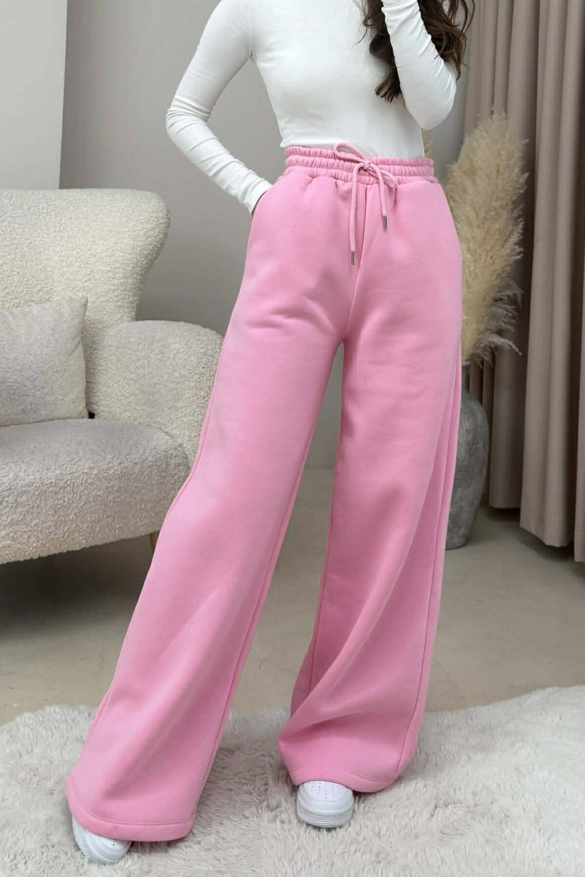 ONE COLOR FLUFFY WOMEN SWEATPANTS PINK/ROZE