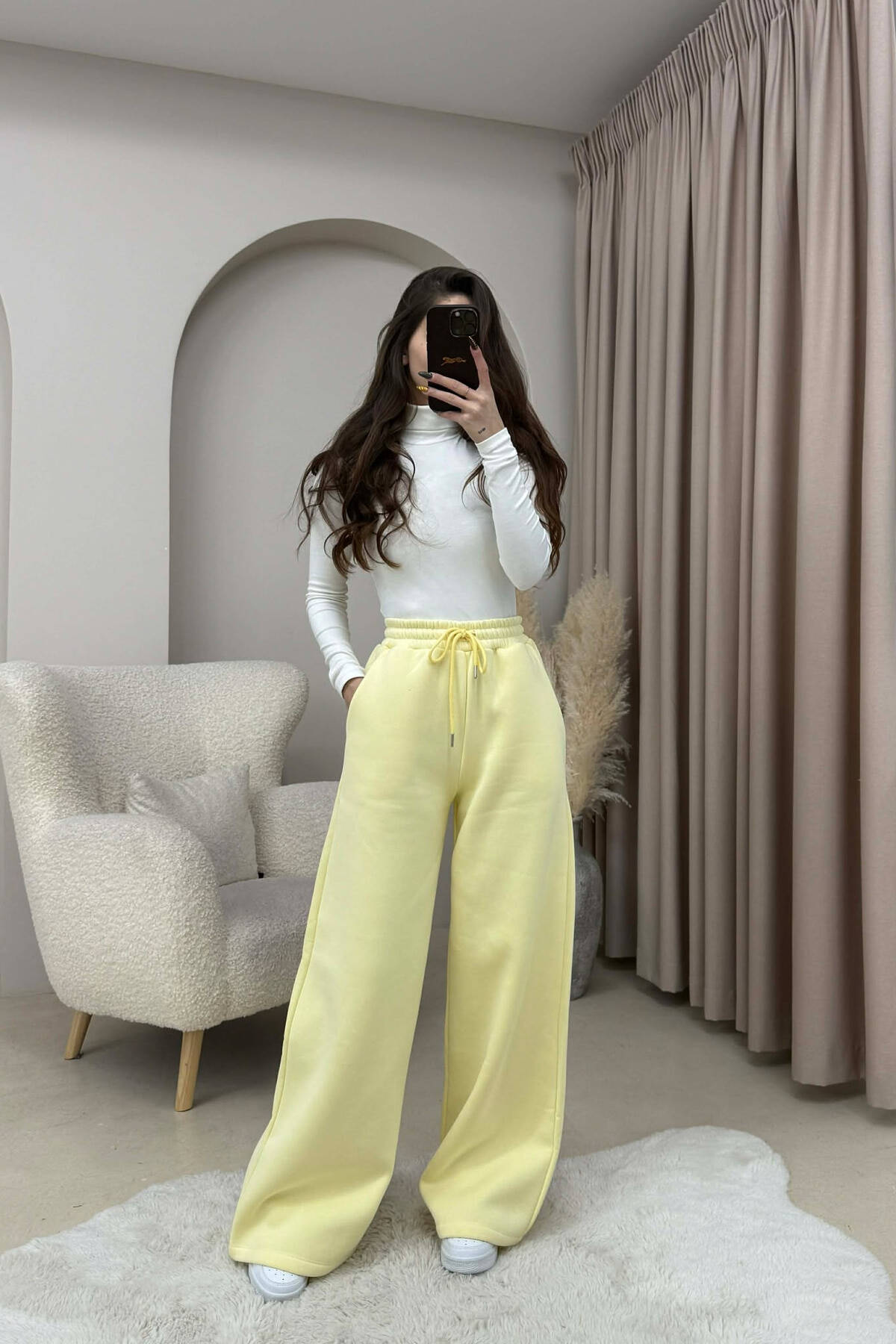 ONE COLOR WIDE LEG WOMEN SWEATPANTS CREAM/KREM