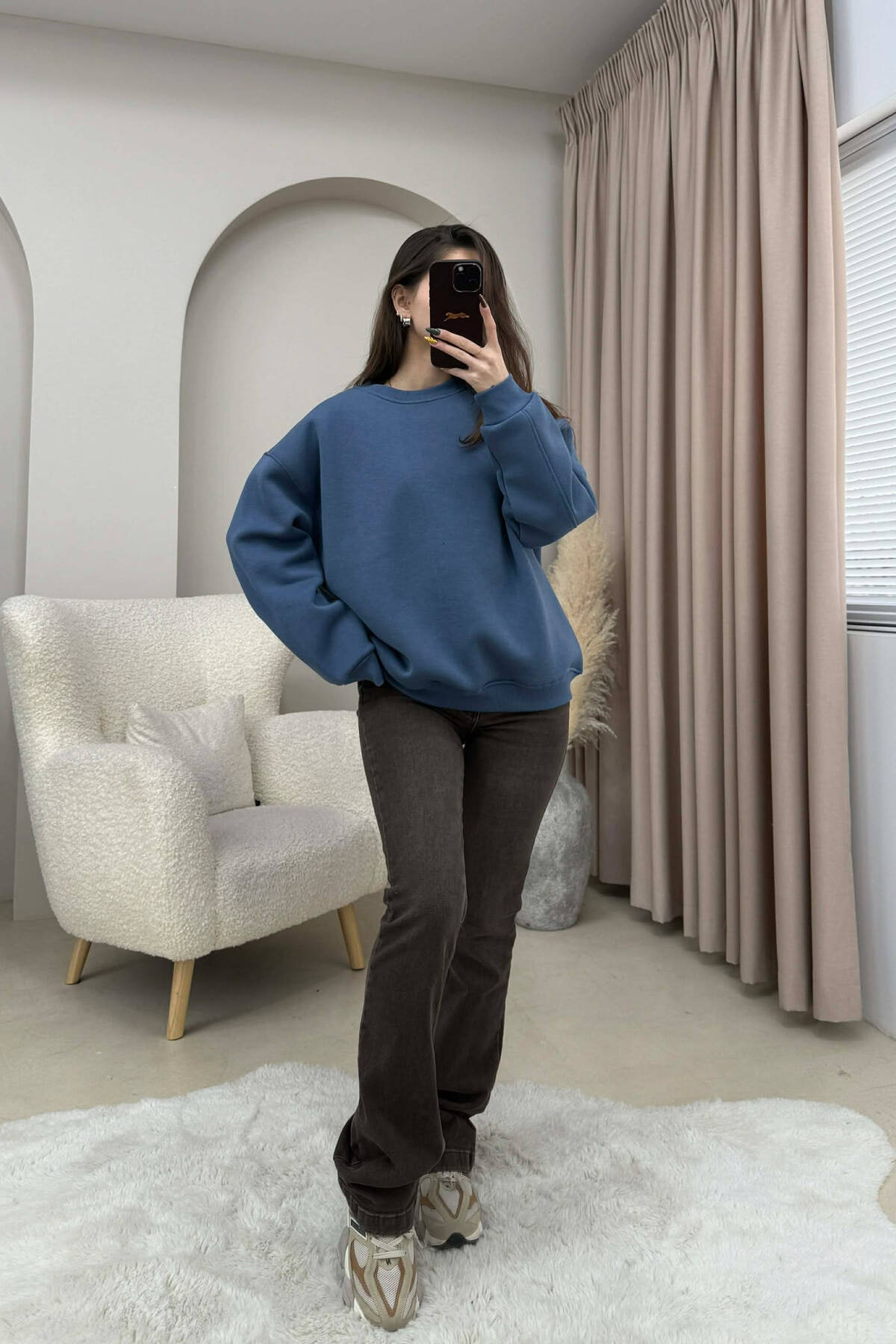 ONE COLOR FLUFFY WOMEN SWEATSHIRT LIGHTBLUE/BZ