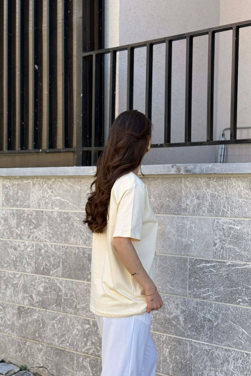 FRONT & BACK IMAGE WOMAN T-SHIRT CREAM/KREM