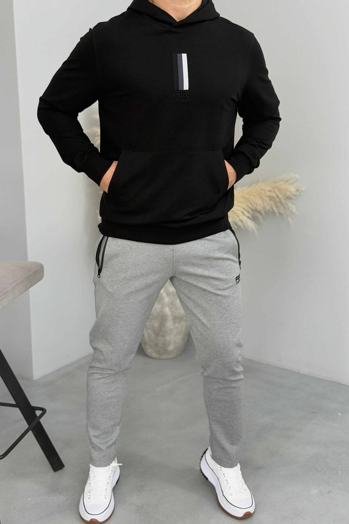 ONE COLOR ZIPPER NECK MEN HOODIE BLACK/ E ZEZE