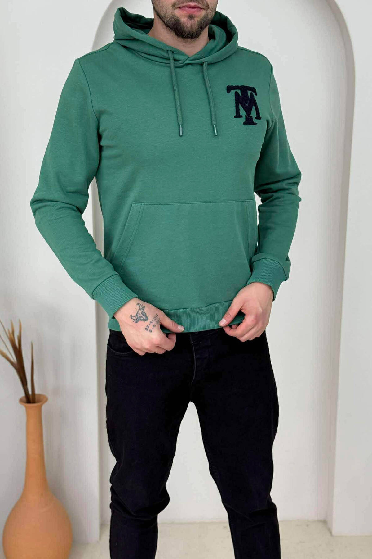 ONE COLOR FRONT LOGO SIMPLE MEN HOODIE GREEN/JESHILE