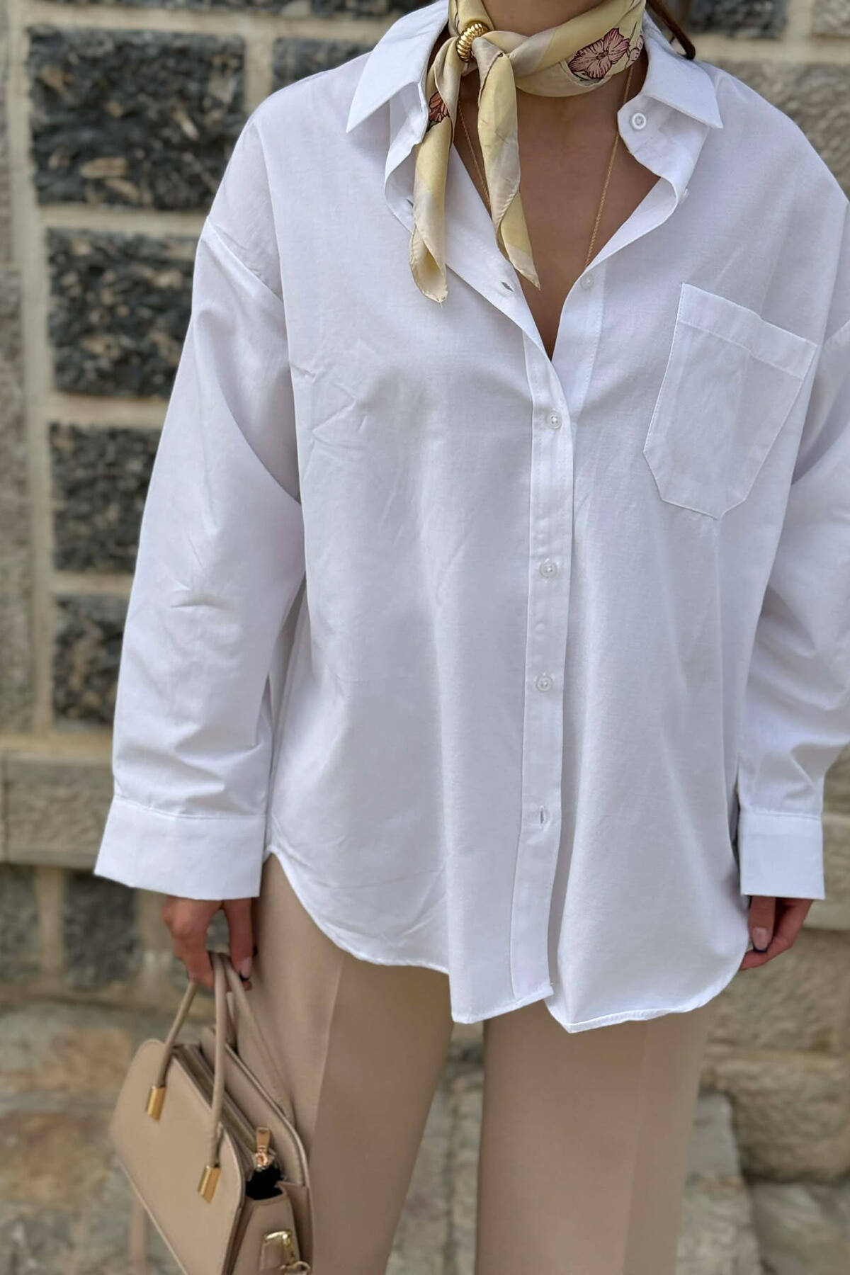 ONE COLOR FRONT POCKET WOMAN SHIRT WHITE-E BARDHE