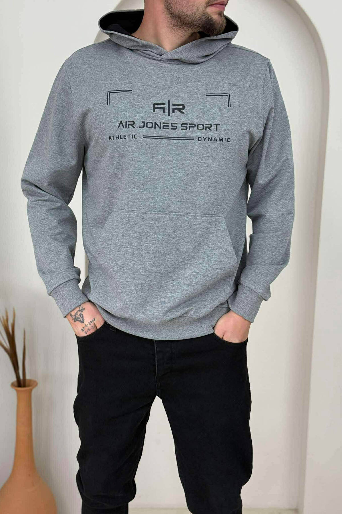 SIMPLE DESIGN ONE COLOR MEN HOODIE GREY/GRI