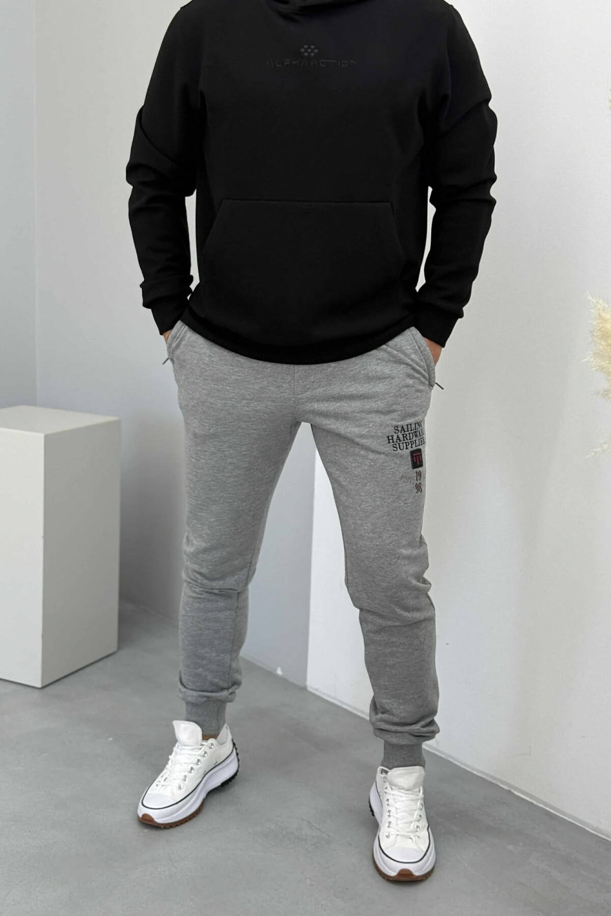 ONE COLOR FRONT WRITTINGS MEN JOGGERS GREY/GRI