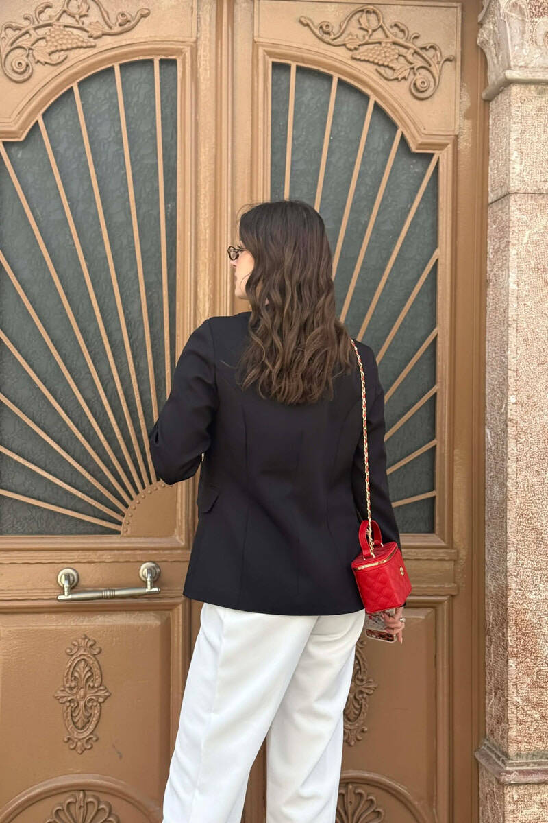XHAKETE KLASIKE NJE NGJYRESHE ME BUTONA GOLD PER FEMRA NE NGJYRE TE ZEZE