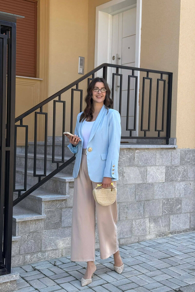 ONE COLOR GOLD BUTTON CLASSIC WOMAN JACKET LIGHTBLUE/BZ