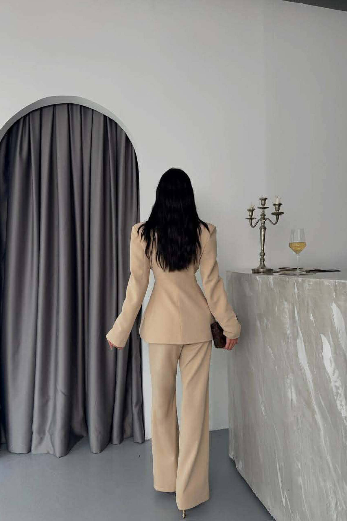 ONE COLOR GOLD BUTTONS JACKET+TROUSERS WOMEN SET BEIGE/BEZHE