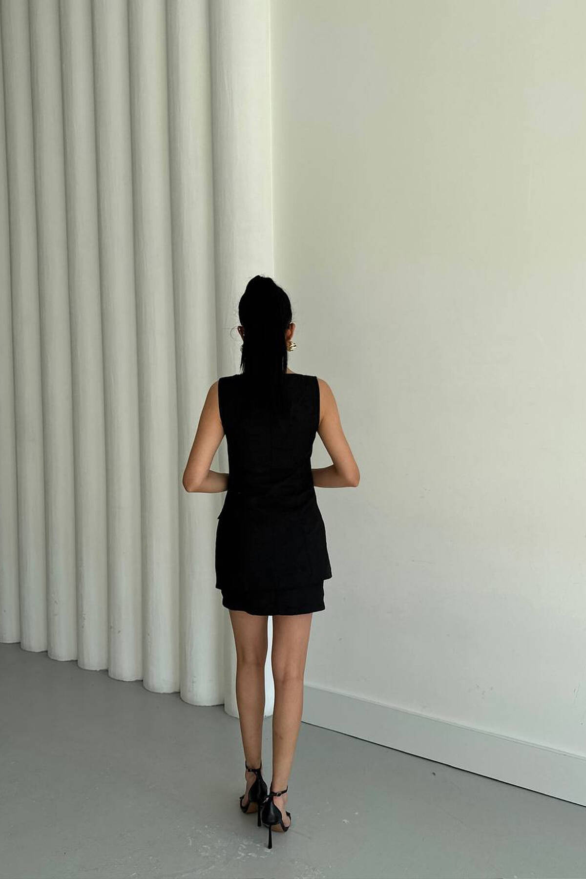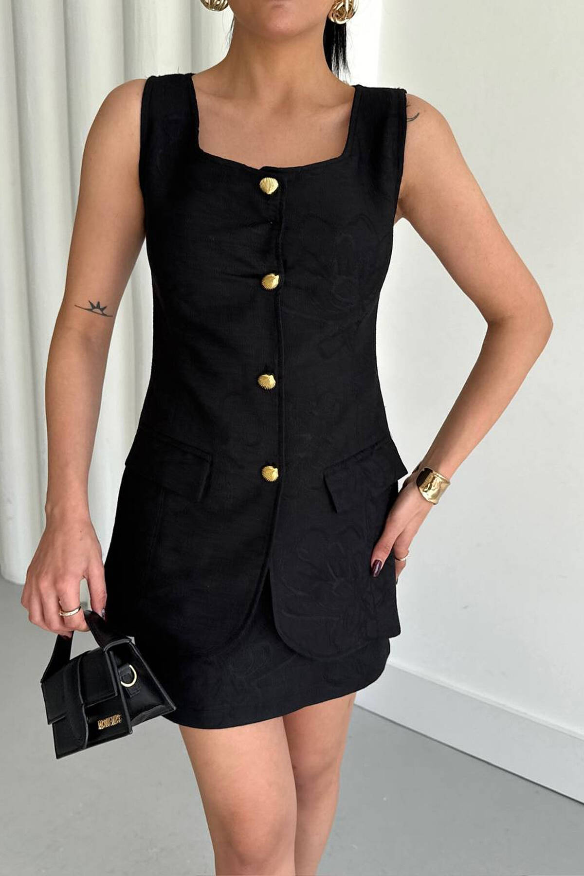 ONE COLOR GOLD BUTTONS VEST + SKIRT WOMAN SET BLACK/ E ZEZE