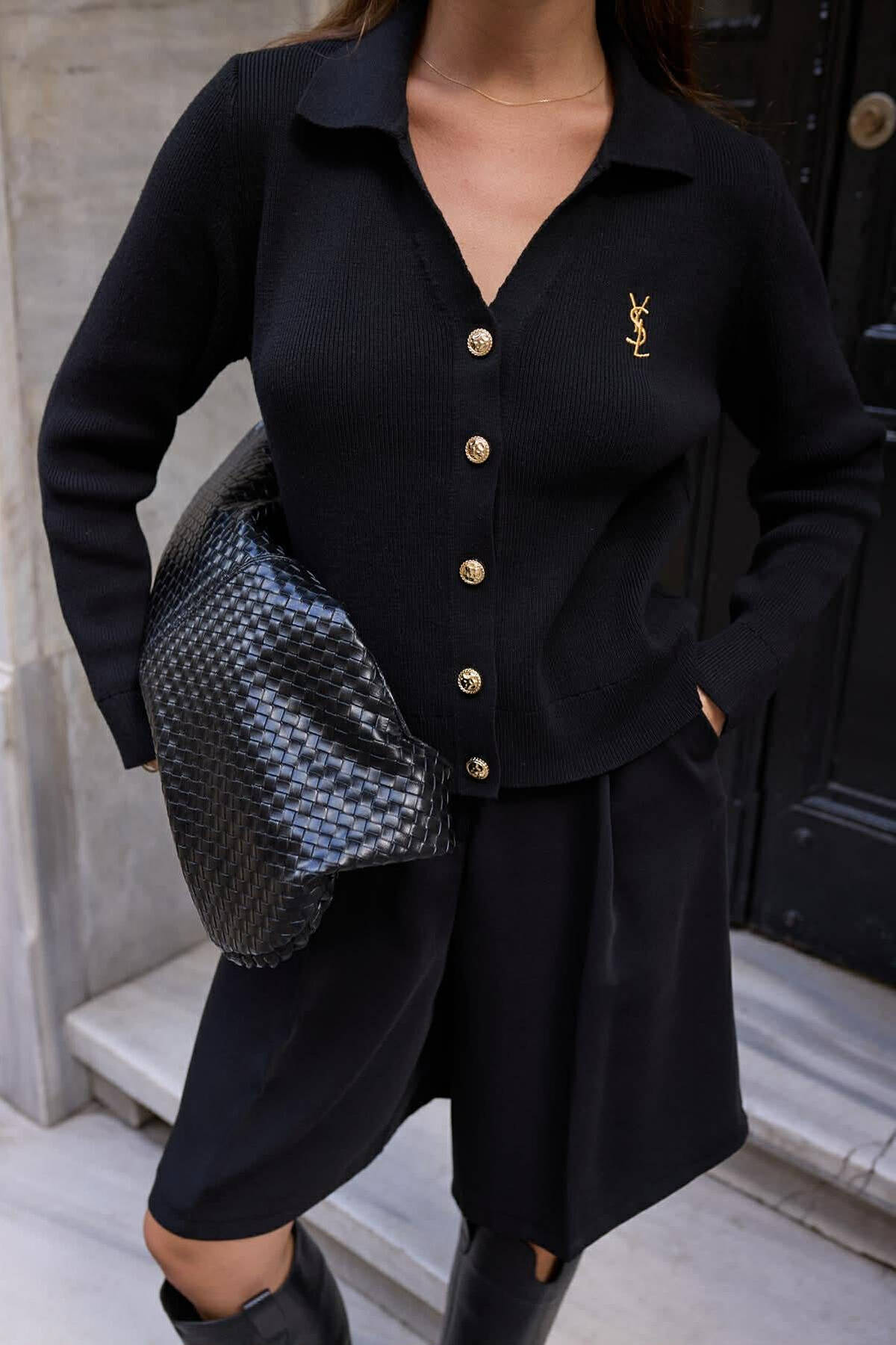 ONE COLOR GOLD BUTTONS WOMAN CARDIGAN BLACK/ E ZEZE