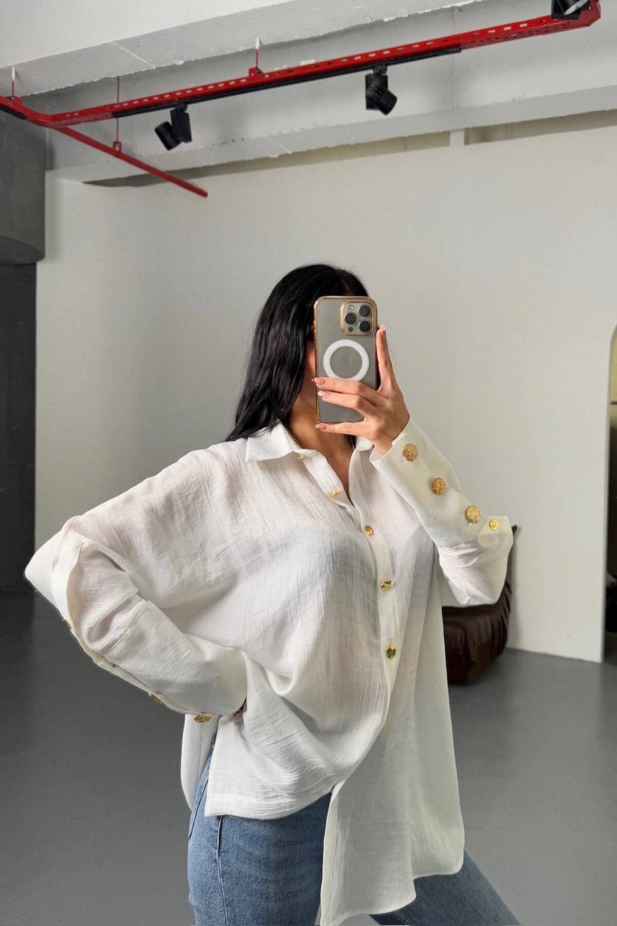 ONE COLOR GOLD BUTTONS WOMAN SHIRT WHITE-E BARDHE