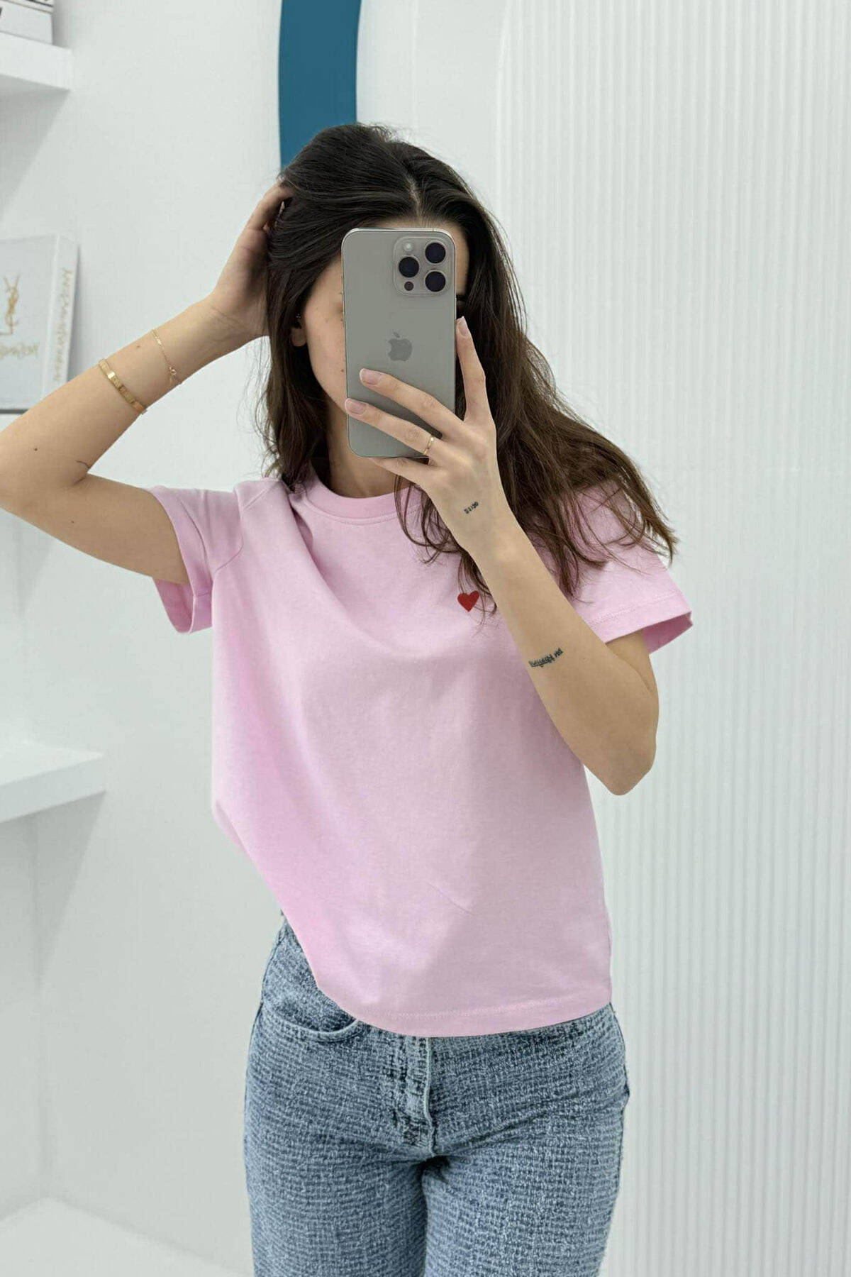 ONE COLOR HEART LOGO SIMPLE WOMEN T-SHIRT PINK/ROZE