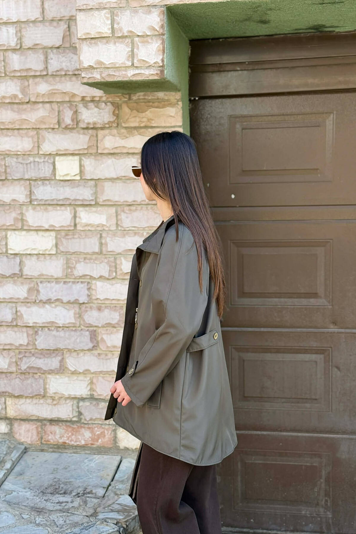 XHAKETË KLASIKE NJË NGJYRËSHE PËR FEMRA NË NGJYRE ULLIRI