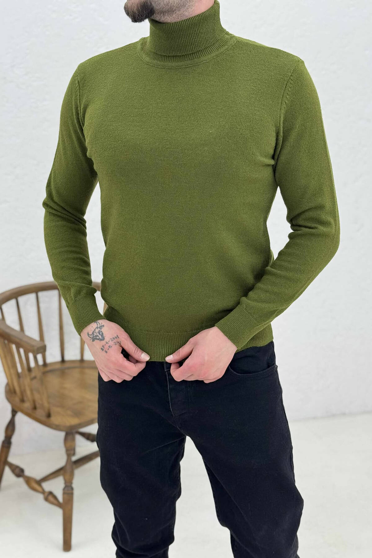 ONE COLOR HIGH NECK MEN SWEATER GREEN/JESHILE