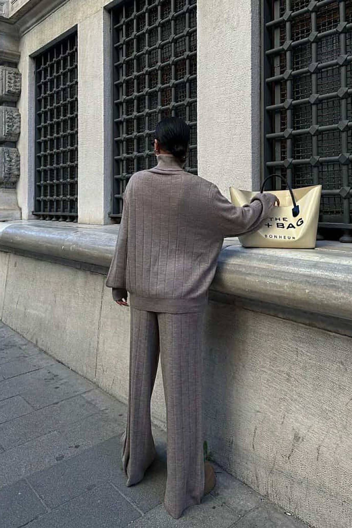 ONE COLOR HIGH NECK SWEATER+TROUSERS WOMEN SET LIGHT BROWN/KAZB