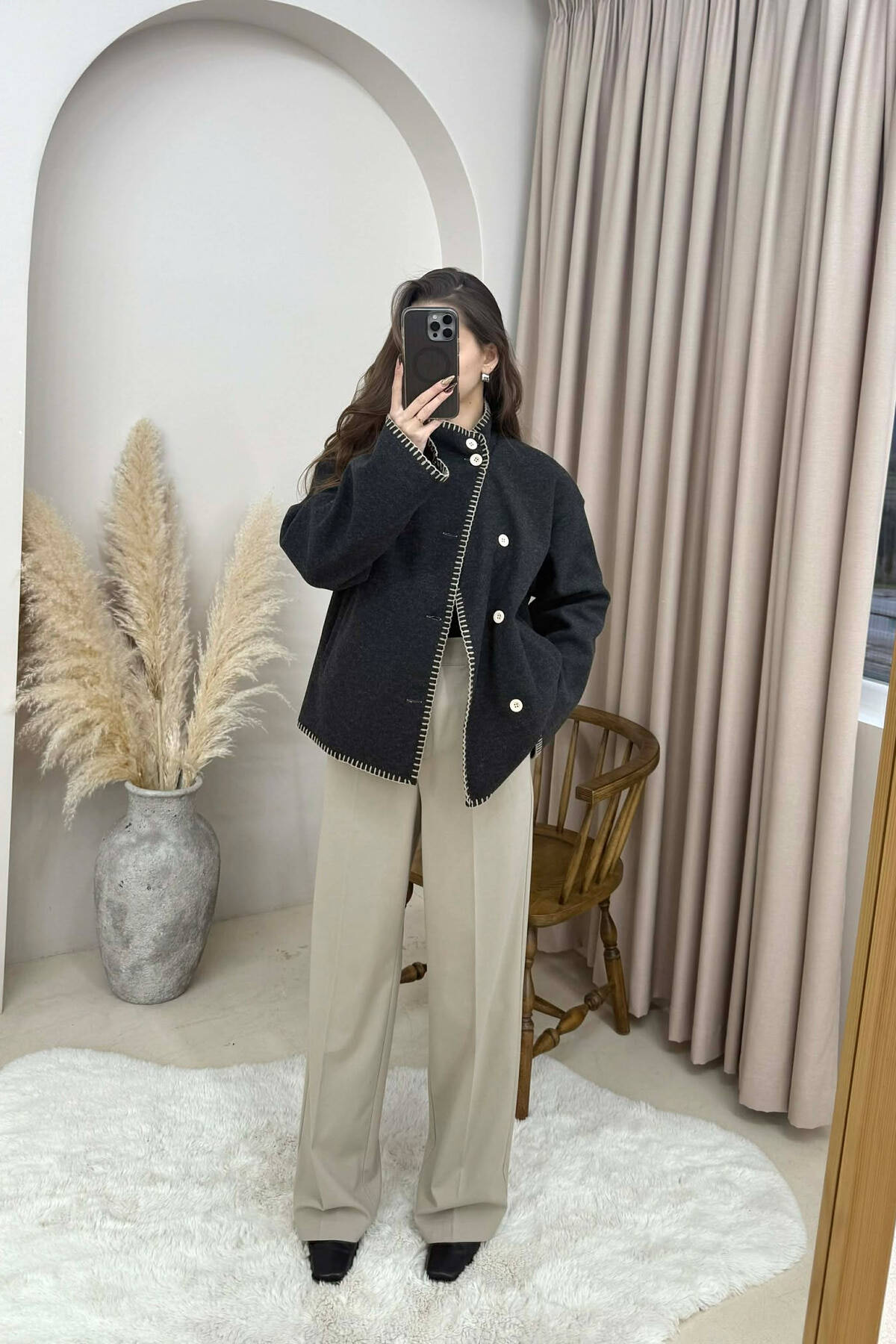 ONE COLOR HIGH NECK WOMEN JACKET DARK GREY/GEE