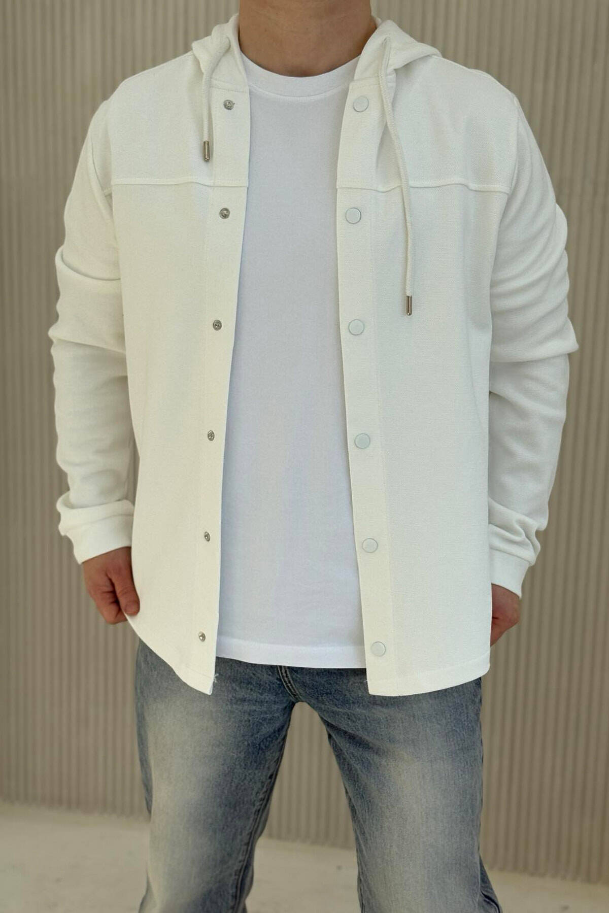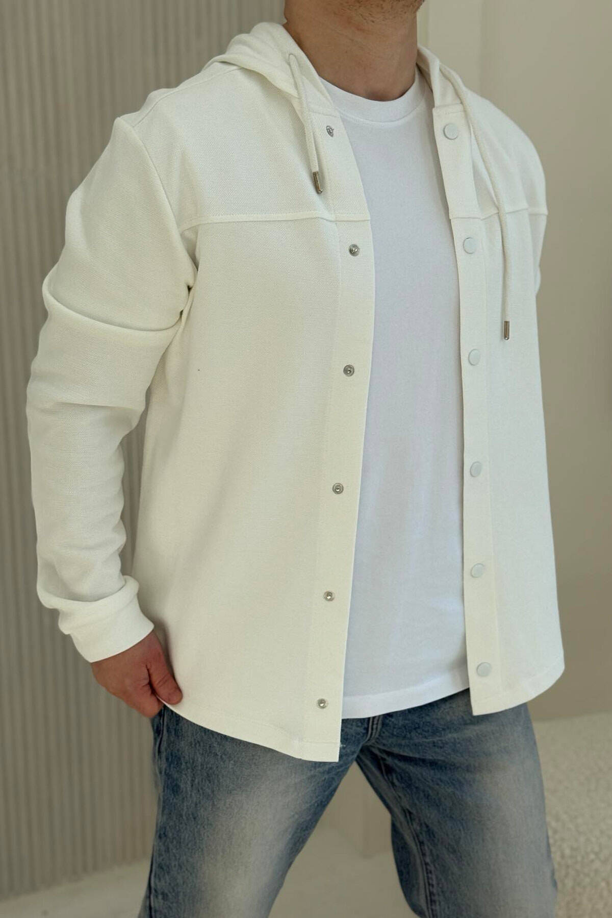 ONE COLOR HOODED MEN CARDIGAN WHITE-E BARDHE