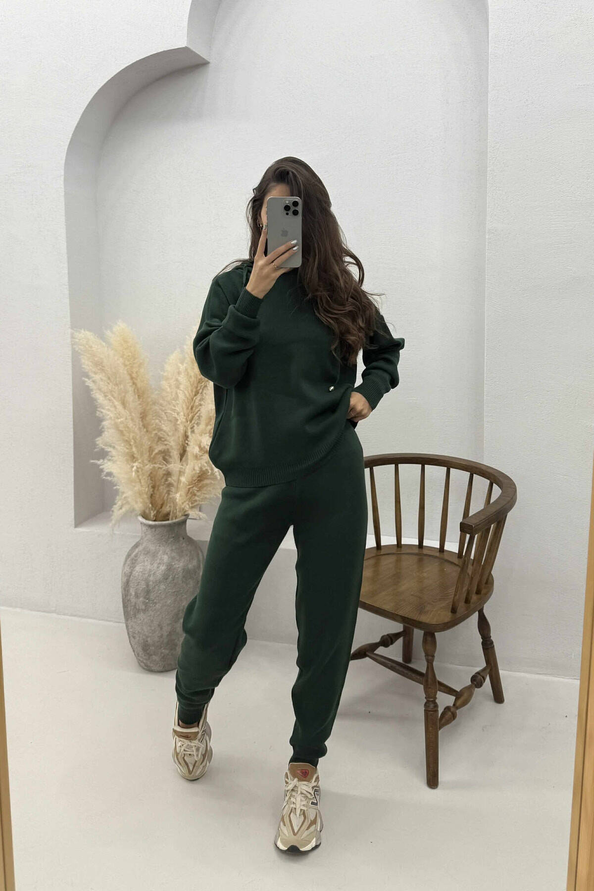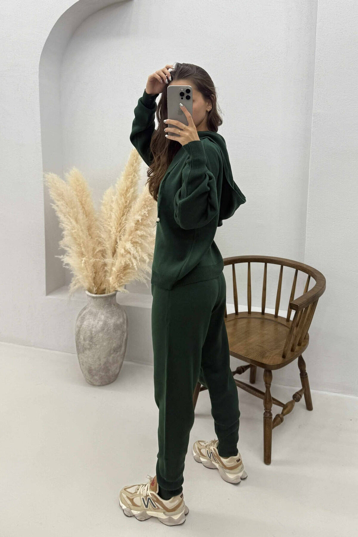 ONE COLOR HOODED WOMEN KNIT SET DARK GREEN/JEE