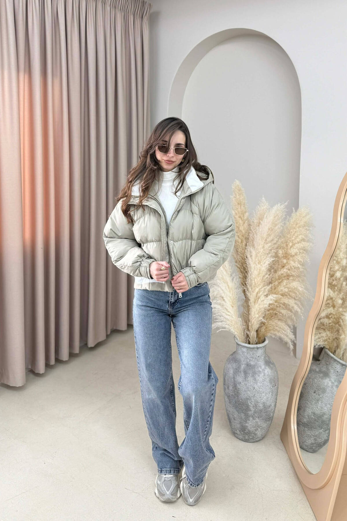 ONE COLOR HOODED ZIPPER CROPPED WOMAN PUFFER JACKET MINT/MENTE