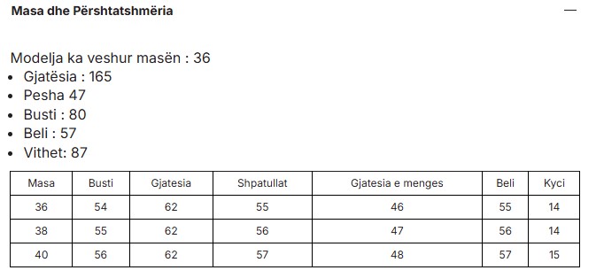 Size chart