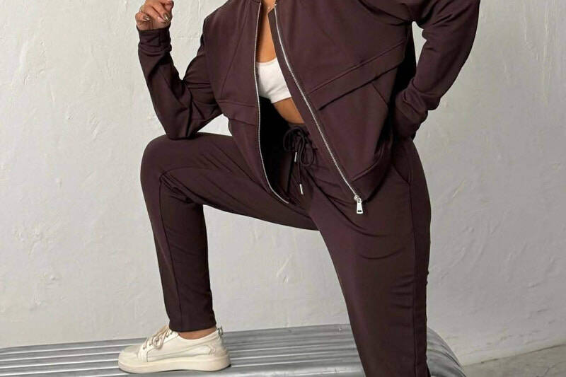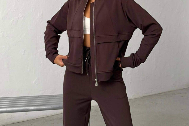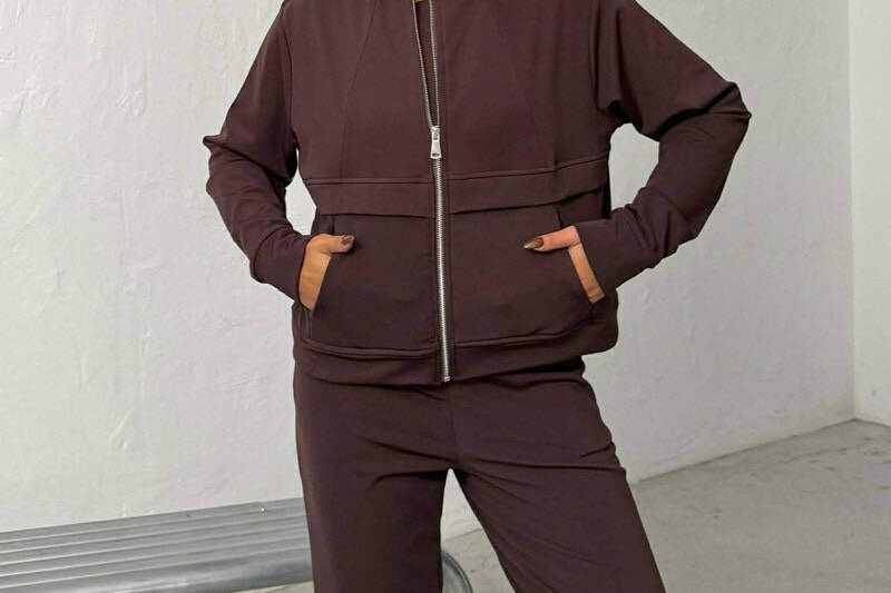 ZIPPER JACKET + SWEATPANTS WOMAN SET BROWN/KAFE