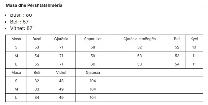 Size chart