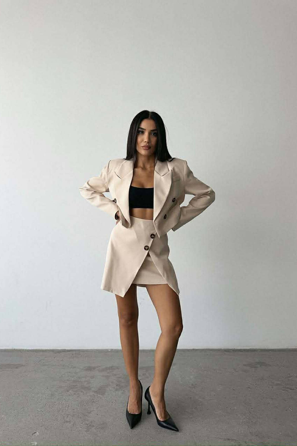 ONE COLOR JACKET+SKIRT WOMEN SET BEIGE/BEZHE