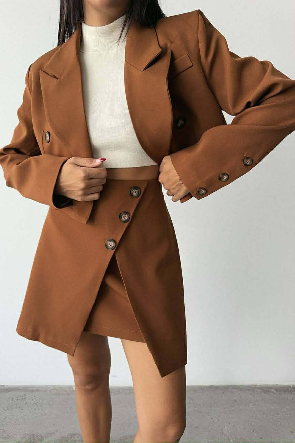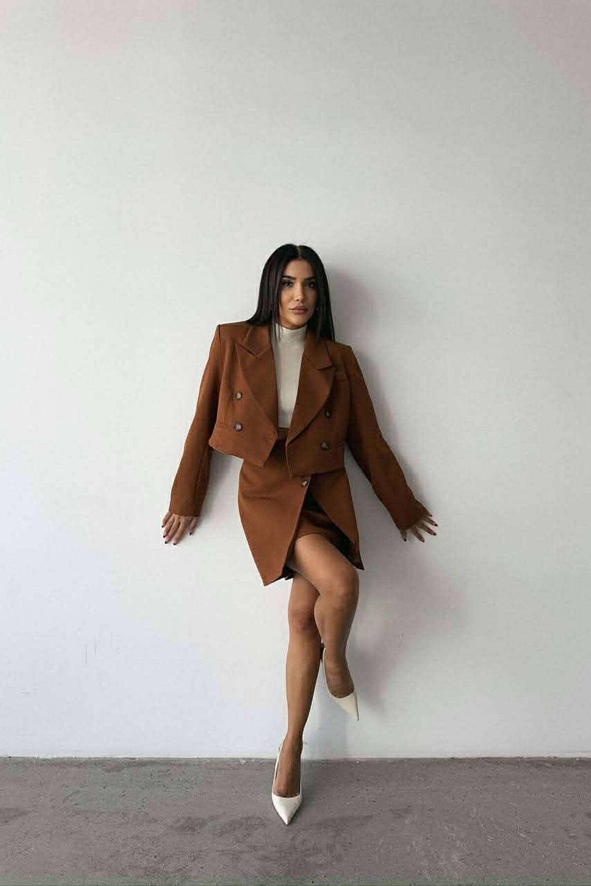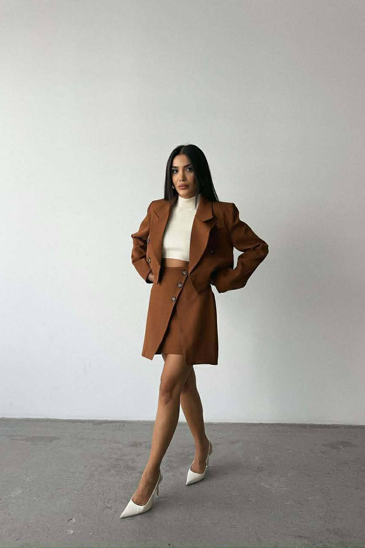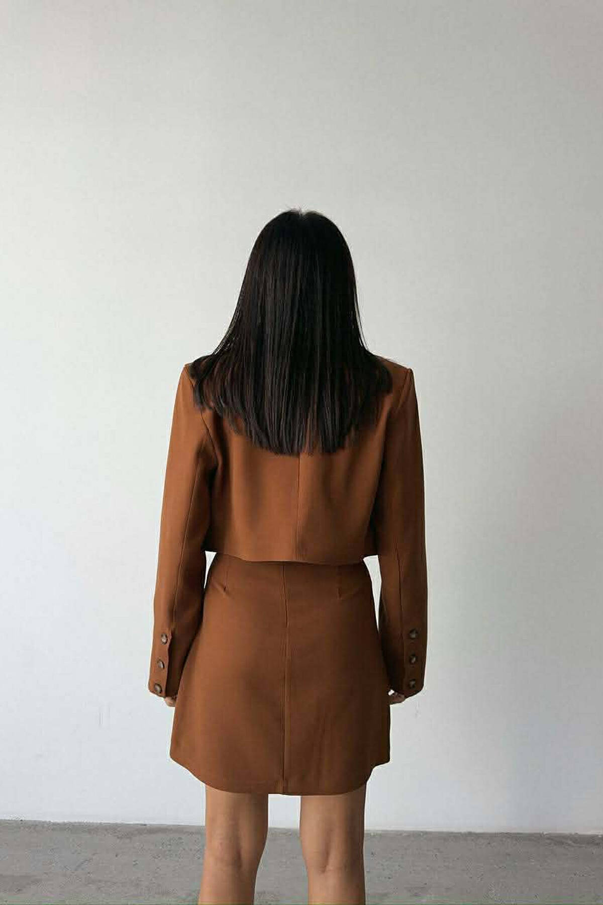 ONE COLOR JACKET+SKIRT WOMEN SET BROWN/KAFE