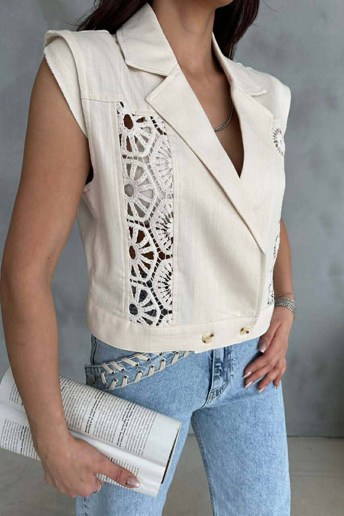 ONE COLOR KNITTED DETAILS WOMEN VEST CREAM/KREM